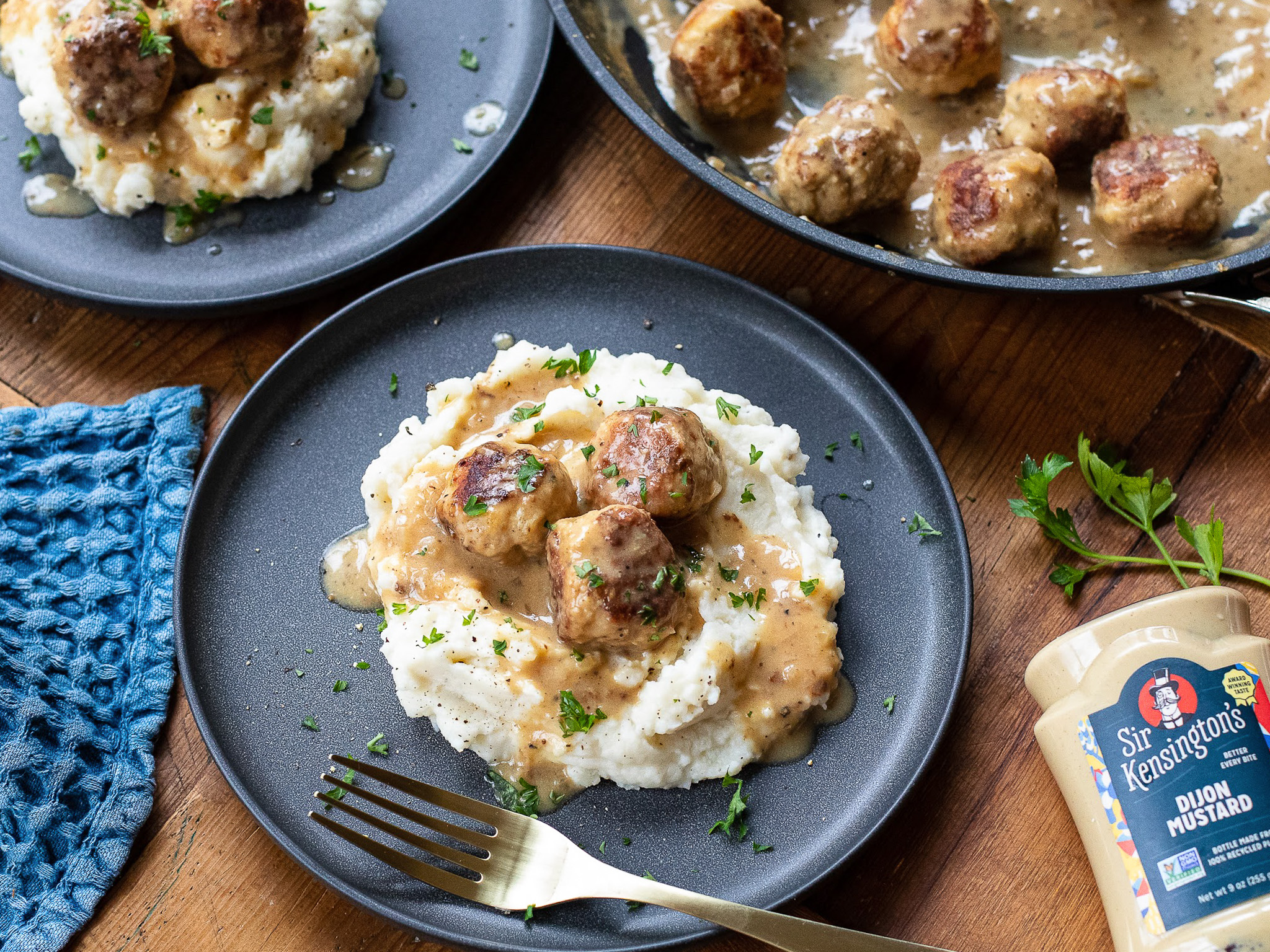 Whip up a batch and serve over potatoes or rice for a meal that’s ready in less than 30 minutes. Or if you are really short on time, you can grab some frozen meatballs, make the dijon sauce for a dinner in a flash.