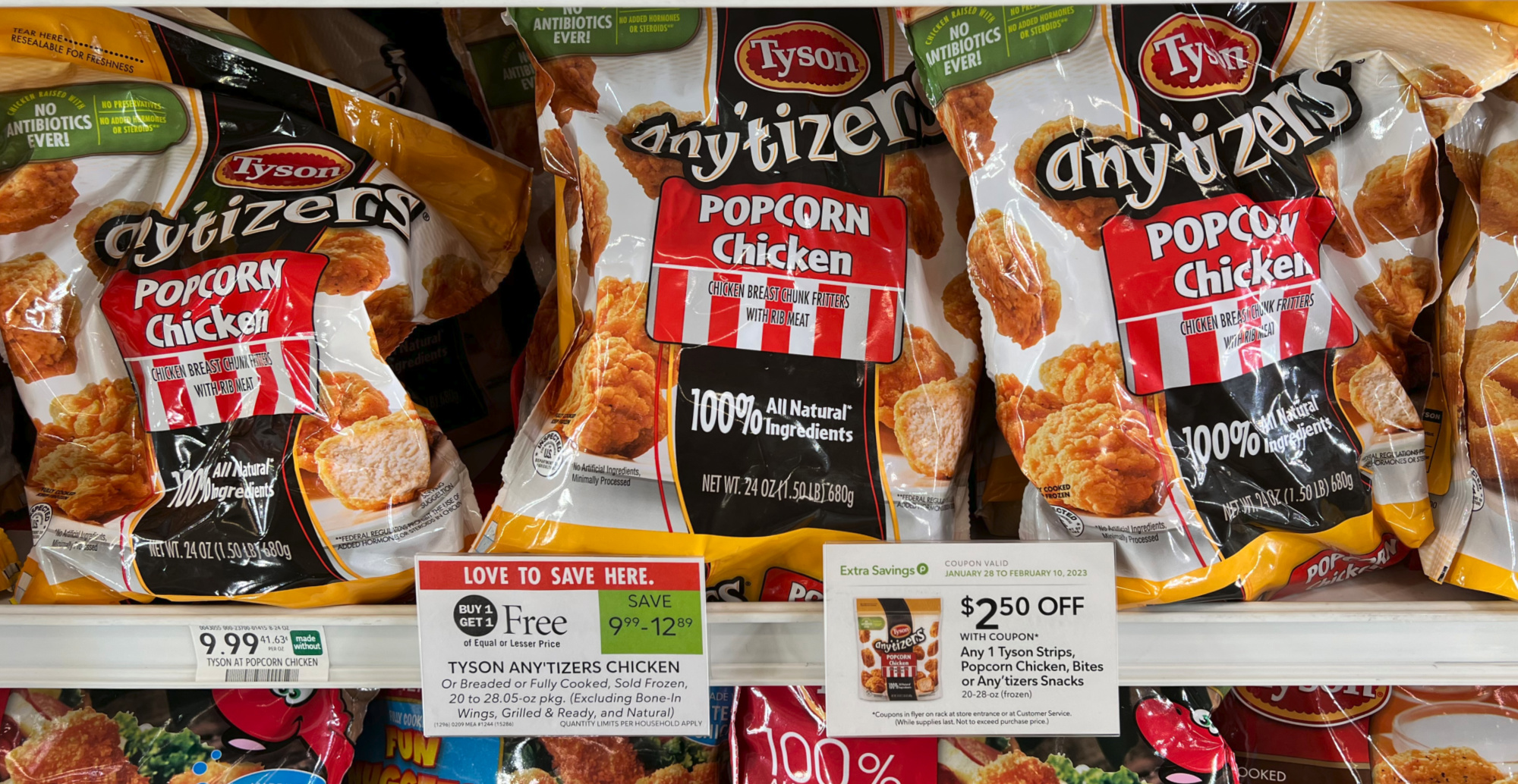 -$2.50/1 Tyson Strips, Popcorn Chicken, Bites, or Any’tizers Snacks, 20 to 28 oz, Frozen, Extra Savings Flyer In-Ad Publix Coupon (valid 1/28 to 2/10)