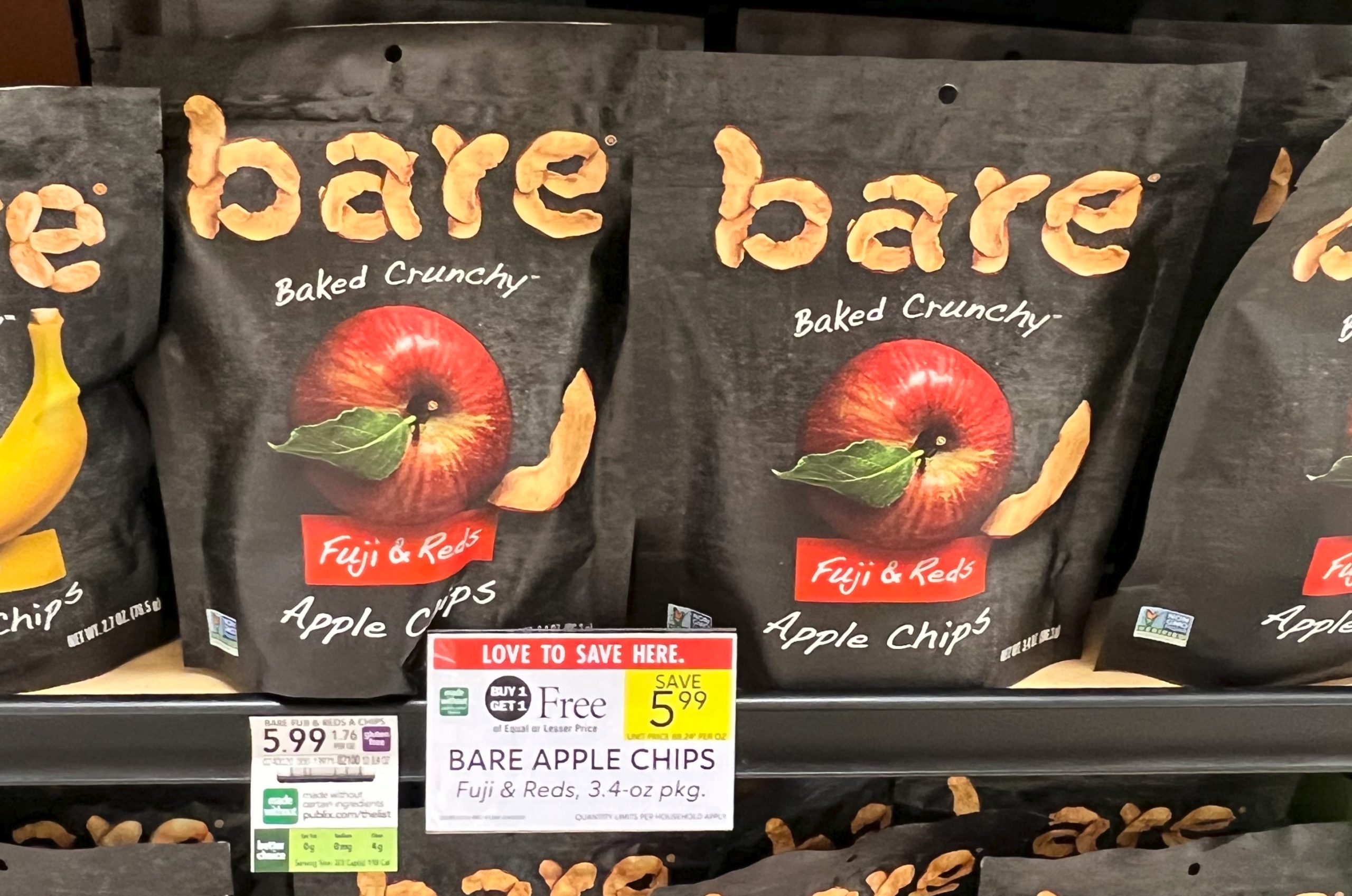 Need a tasty, better-for-you snack? You can get Bare Fruit Chips for as low as $2.50 at Publix. With a ton of different varieties so you can grab your favorites or even try something new.