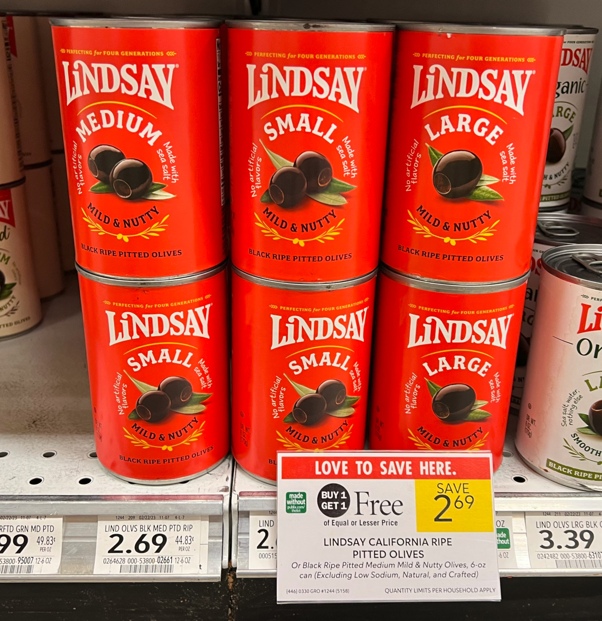 Lindsay Olives, 6 oz can, (Excluding Low Sodium, Natural, and Crafted), BOGO $2.69