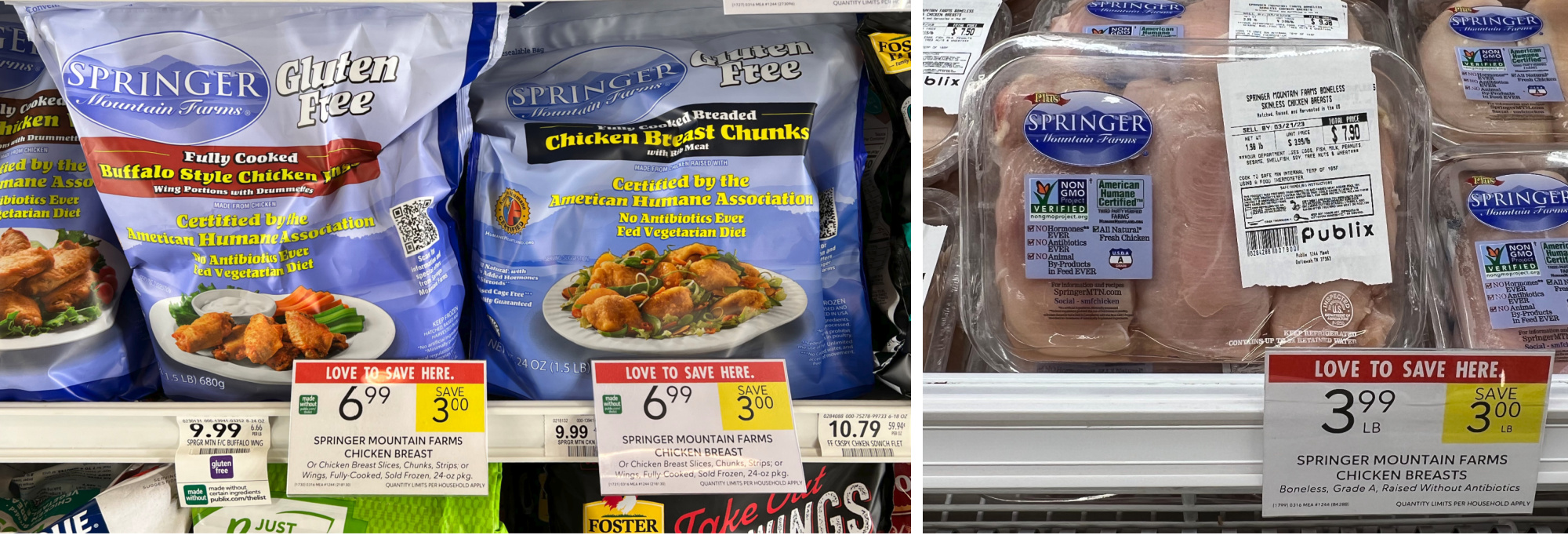 Springer Mountain Farms Boneless Chicken Breasts, $3.99/lb