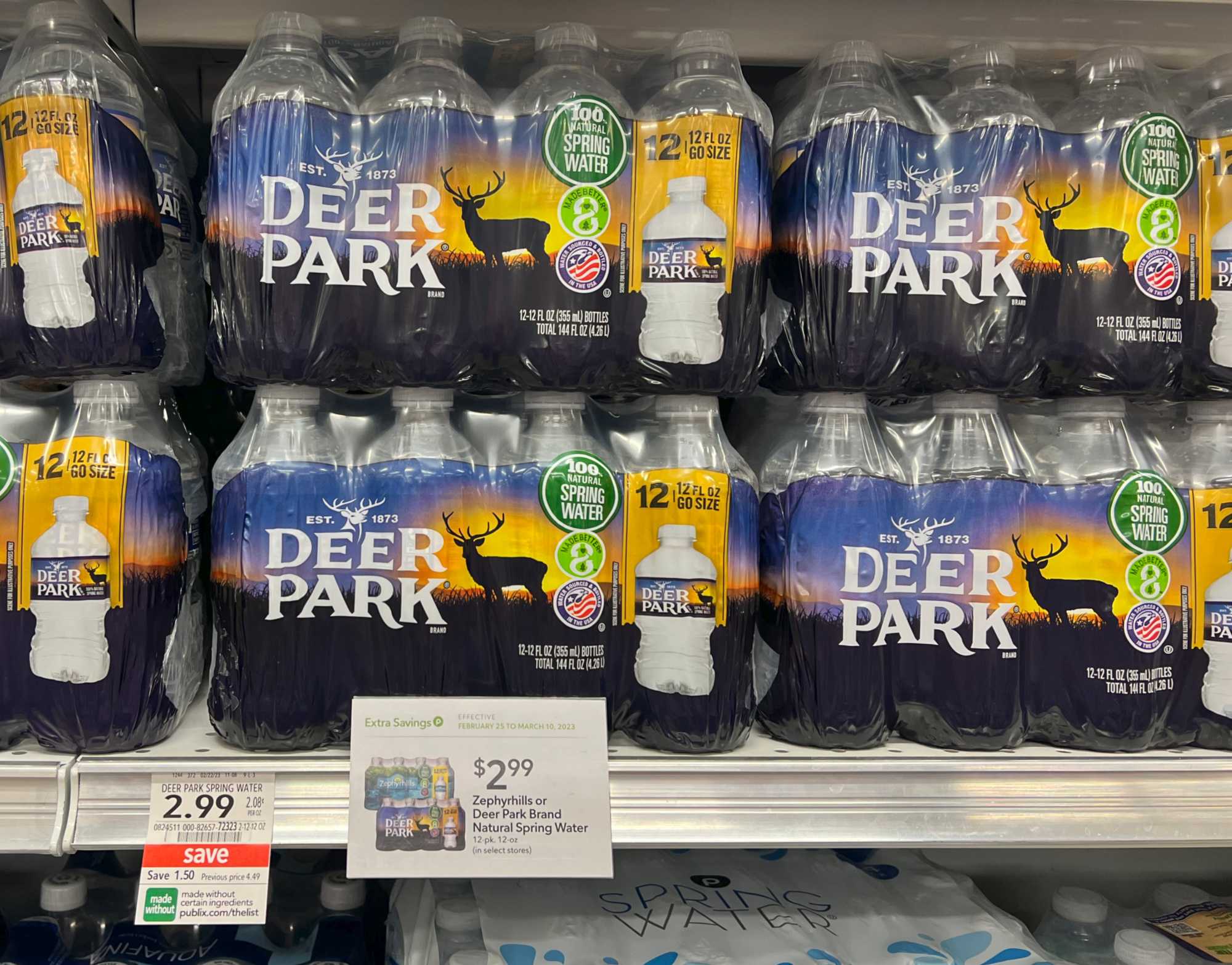 Zephyrhills or Deer Park Brand Natural Spring Water, 12-pk, 12 oz, $2.99 (reg $4.49)