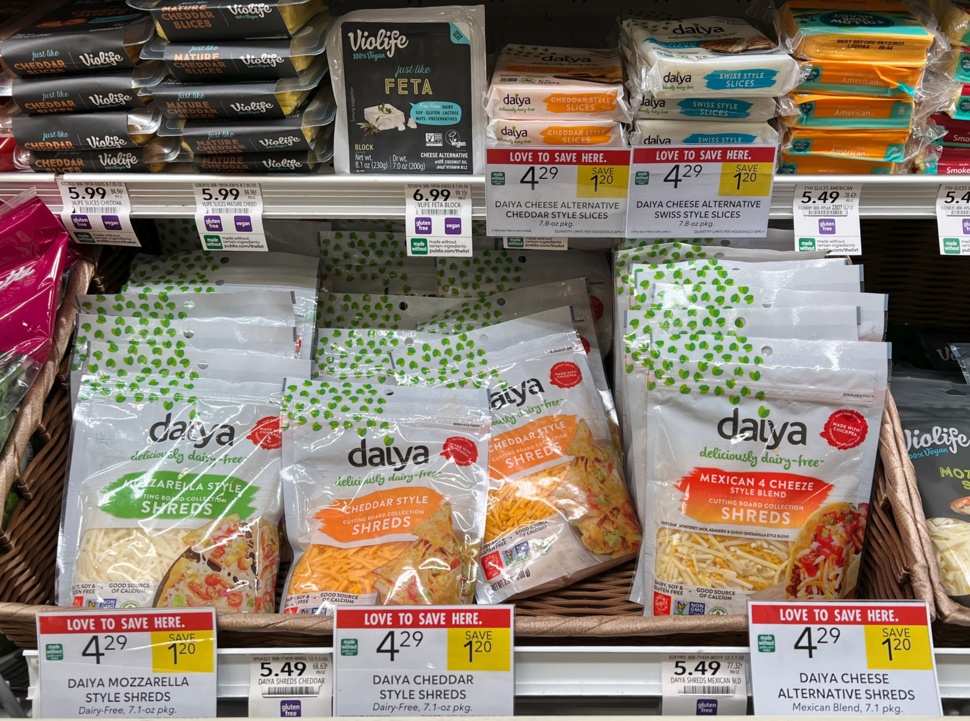 You can pick up Daiya Dairy Free Slices & Shreds at a discount. Grab the packs for just $2.79 each after the sale and cash back combo.