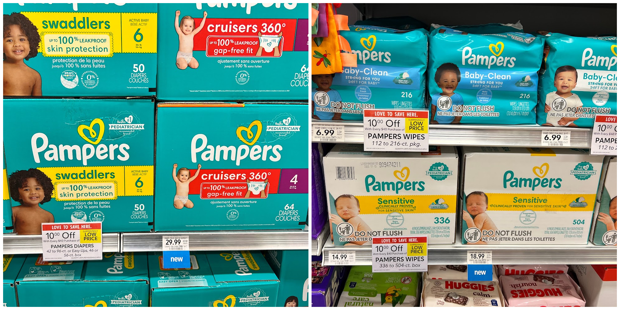 Simply fill your cart with your weekly groceries plus $40 in participating Pampers products and you’ll save $10 instantly at checkout. There’s a limit of 4 deals and the discount will be applied to the non-P&G products in your basket. Here are the participating items: