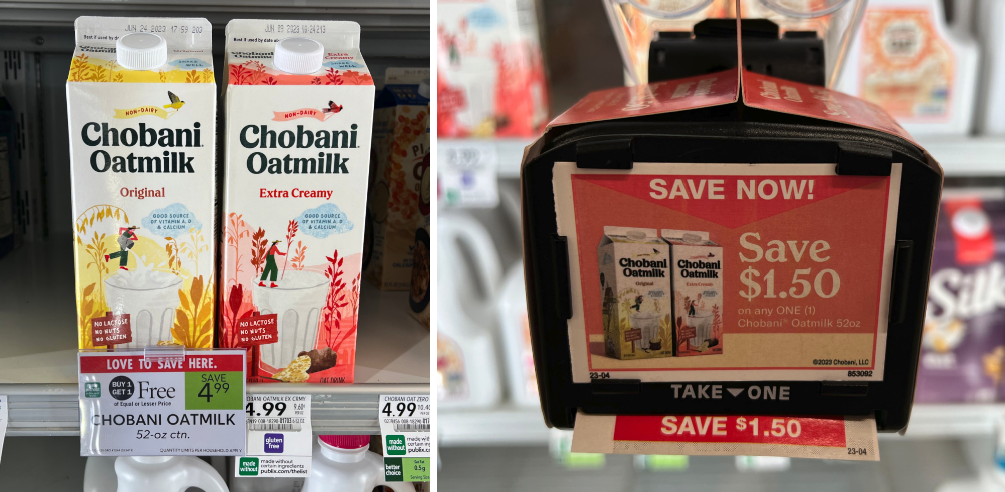 Be on the lookout for a super coupon that will help you grab Chobani Oat Milk for just $1 per carton. If you don’t find the coupon machine, you can still get a nice discount with the insert/sale combo.