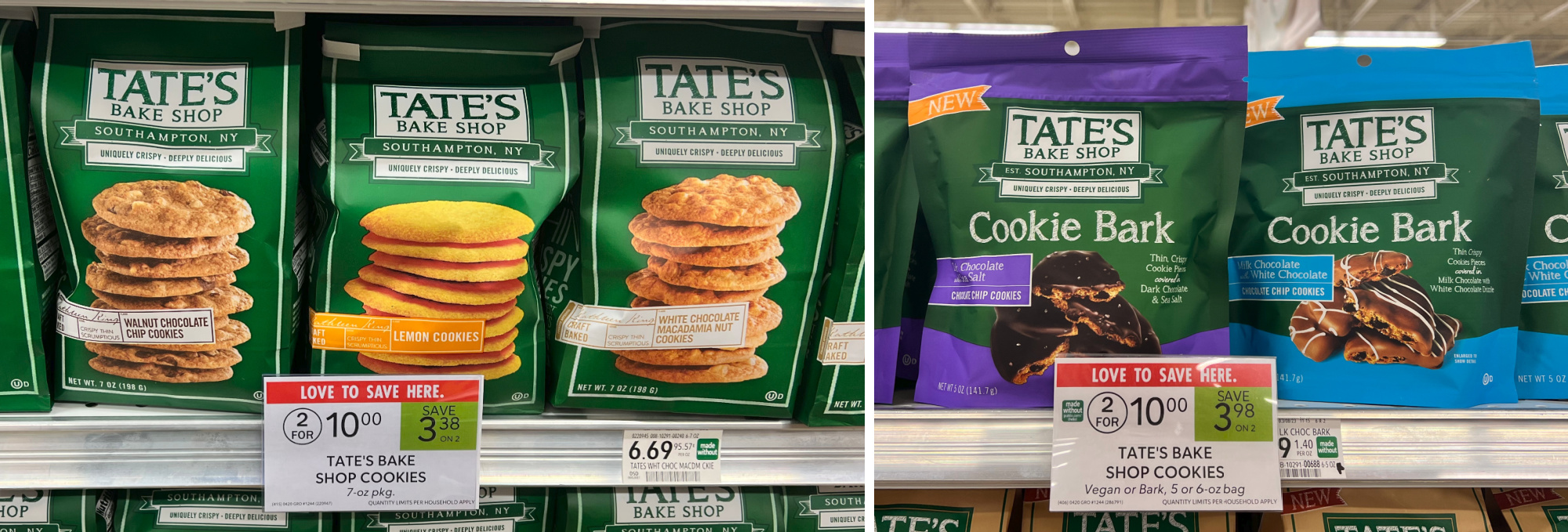 Tate’s Bake Shop Cookies, 5 to 7 oz, 2/$10 (reg $6.69)
