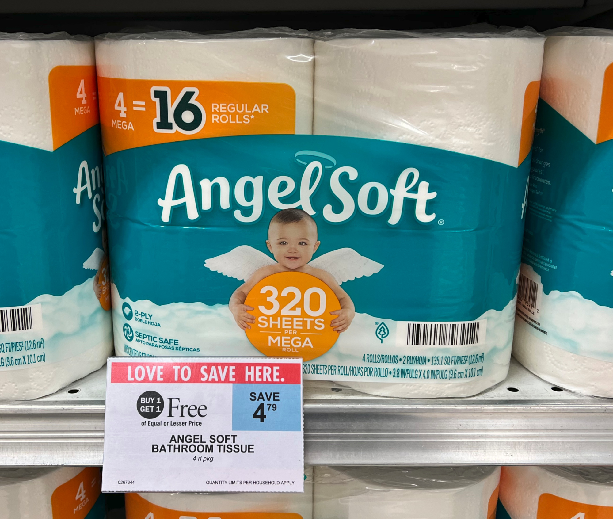Right now you can grab a pack of Angel Soft Bath Tissue for a nice price. Combine the sale and coupon to add a package to your cabinet for as little as $1.90!
