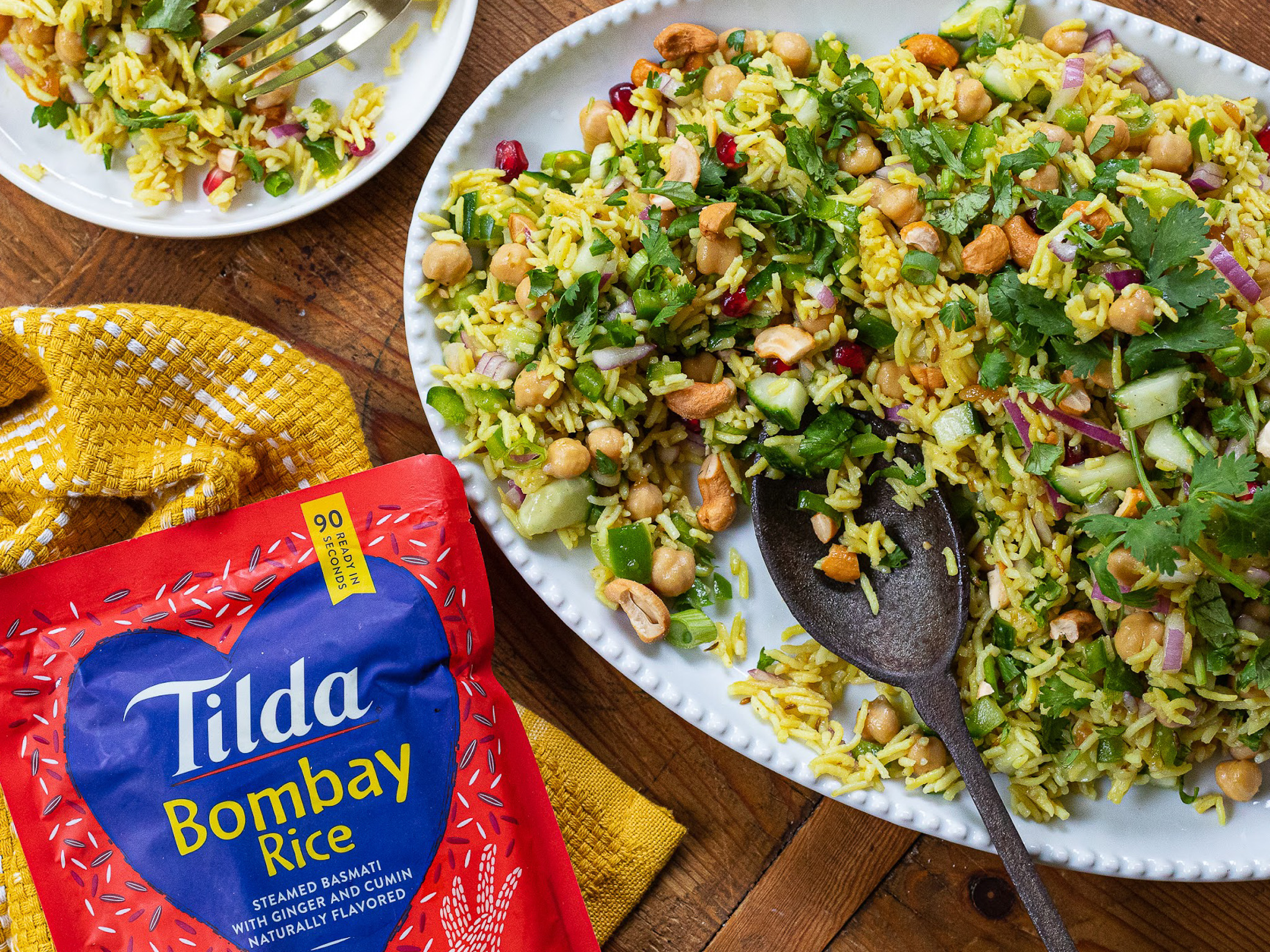 Grab savings and pick up a few ingredients and you can have this tasty Bombay Rice Salad on your table in a flash!