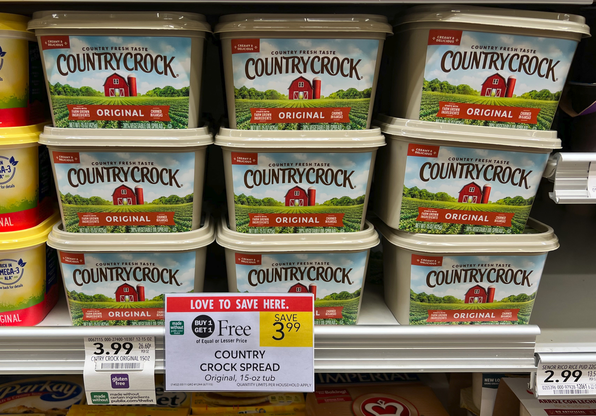 Carefully crafted with simple ingredients you can recognize and pronounce, Country Crock Original brings to the dinner table that real, country fresh taste with no artificial flavors or preservatives. It’s the original and still a rich, creamy, buttery family favorite. Great for spreading, topping, cooking or just about anything.
