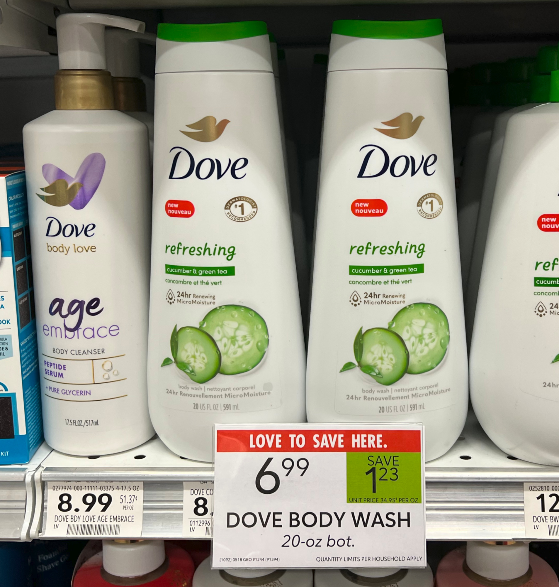 -$2/1 Dove Body Wash 20 oz or larger (excl Twin packs, ets), 5/7 SAVE (exp 5/20/23)