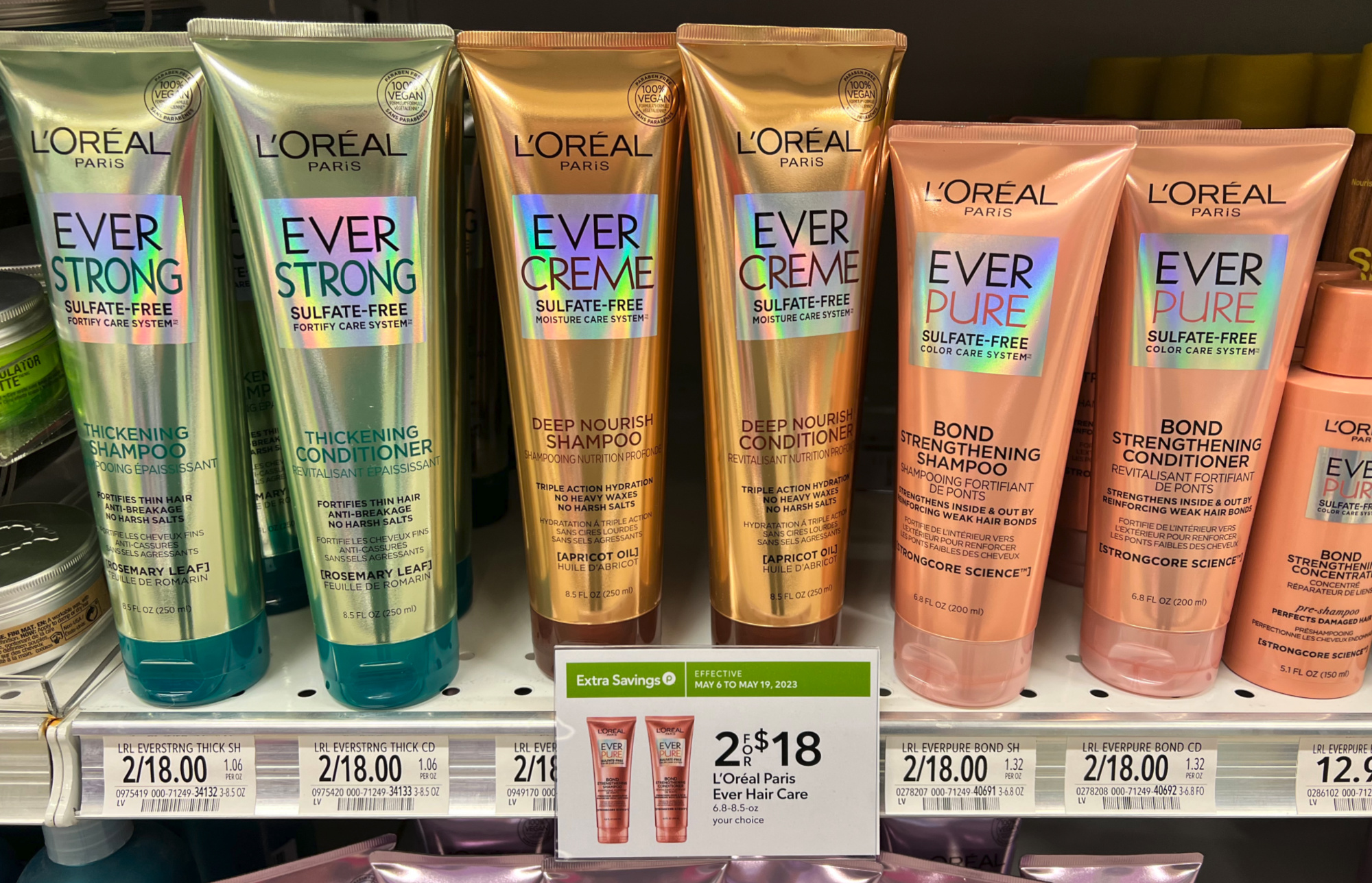 Grab a nice deal on L’Oreal Paris Ever Shampoo or Conditioner at Publix. Combine the sale and Ibotta offer to pay just $7 per bottle.
