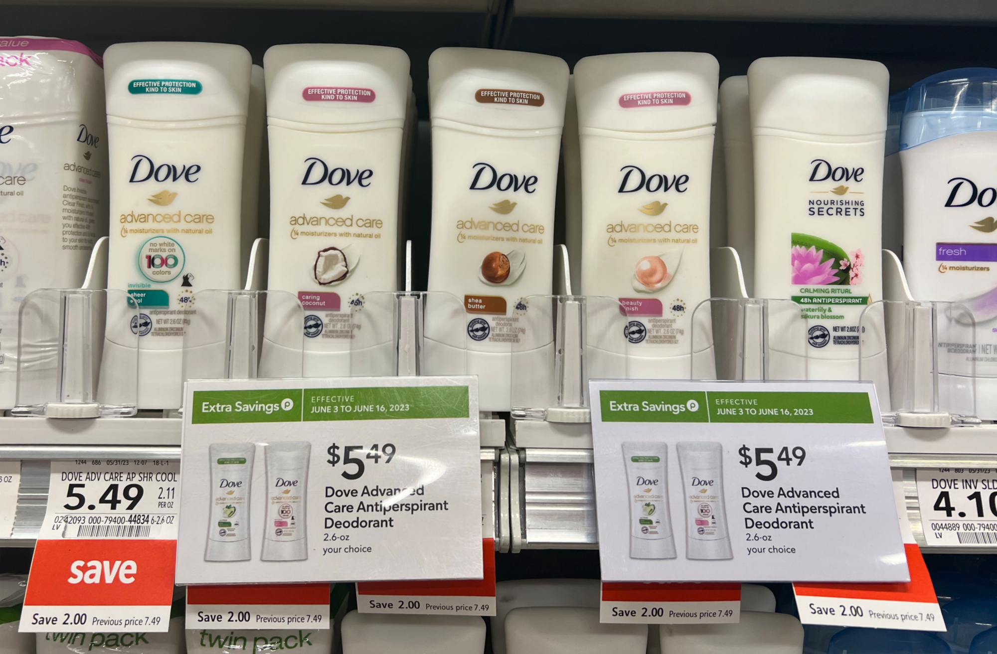 Dove Advanced Care Antiperspirant Deodorant, 2.6 oz, $5.49 (reg $7.49)