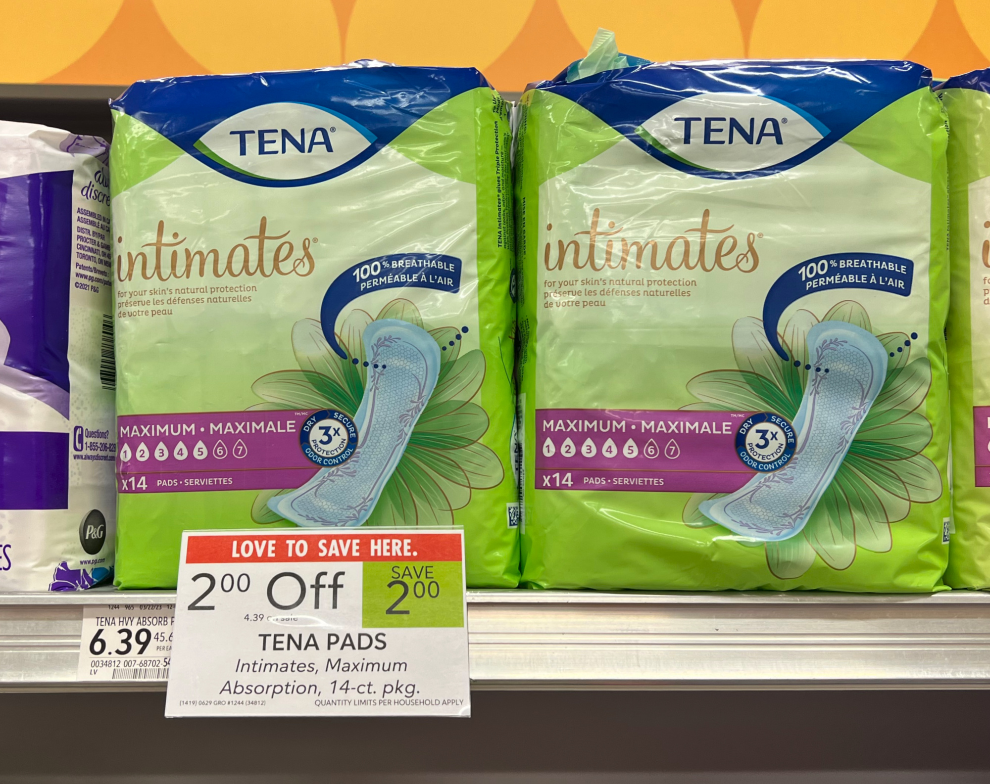 If you use Tena Pads, you can grab a deal at Publix. With the sale and cash back offer, you can pick up packages as low as $1.89 the next time you shop!