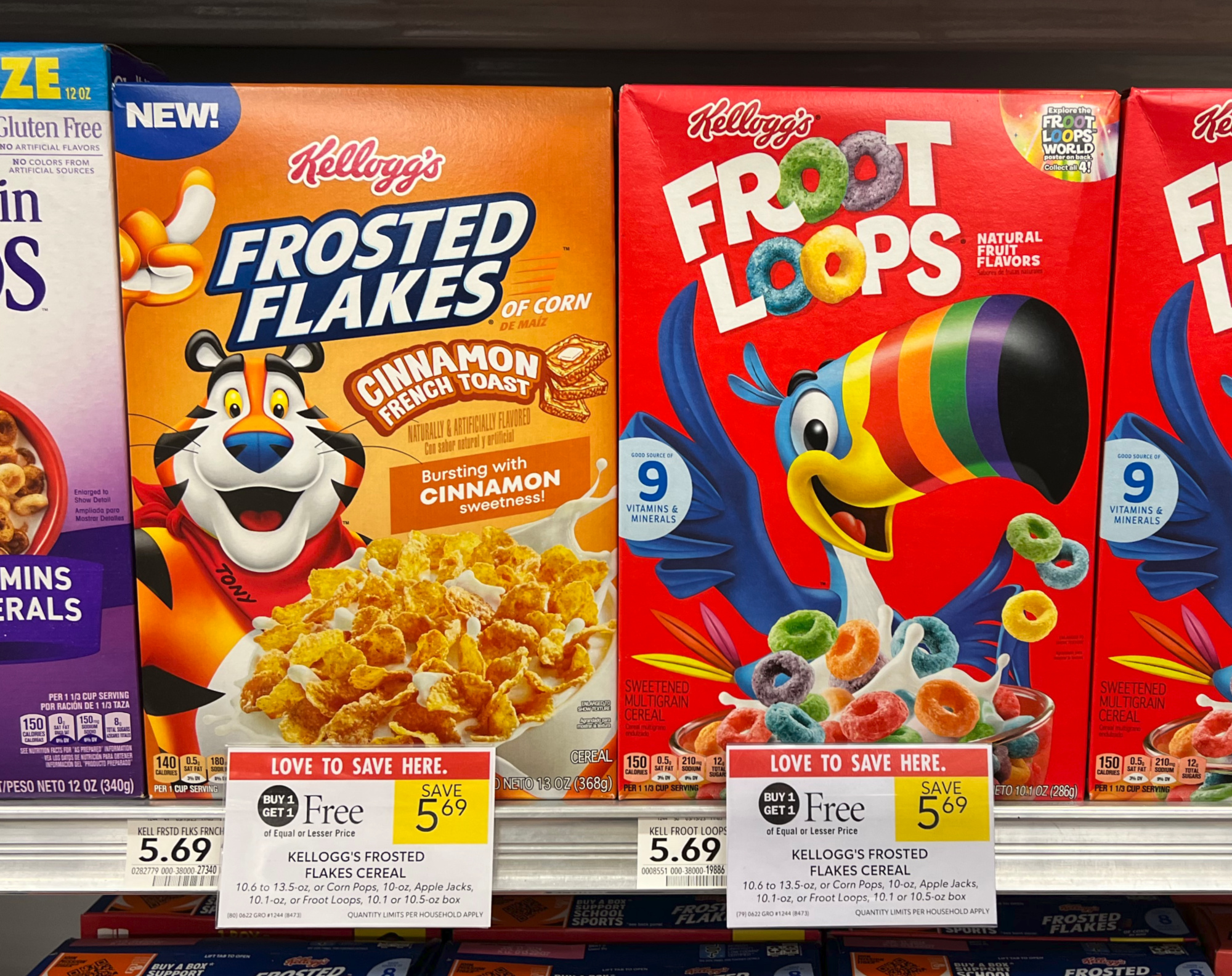 Kellogg’s Frosted Flakes Cereal, or Krispies, 9 to 15.5 oz, or Apple Jacks, Froot Loops, or Corn Pops, 10 to 10.5 oz, BOGO $5.69 – $5.79
