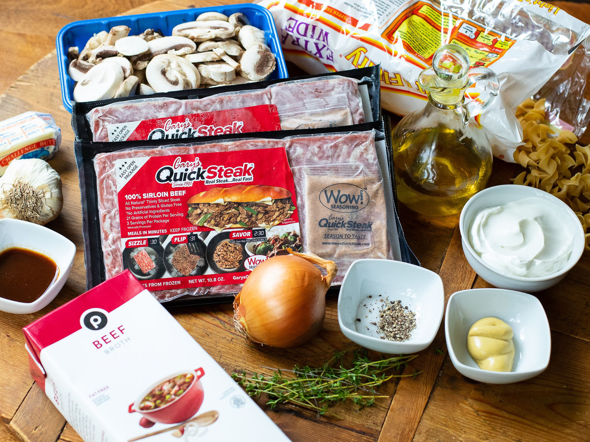 Looking to serve dad something delicious for his special day? Just give him what he wants… a hearty and delicious meal that’s packed with flavor. My Beef Stroganoff recipe combines Gary’s Quick Steak with sautéed onions, and mushrooms in a rich and creamy sauce.