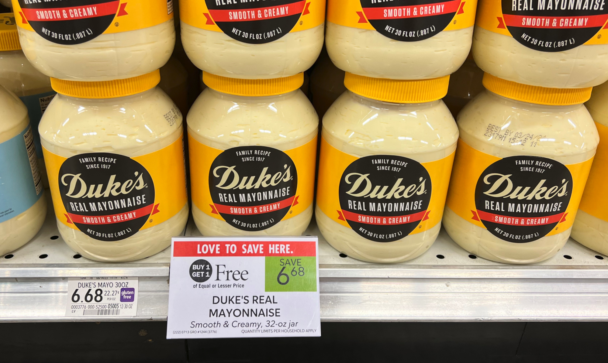 Duke’s Mayonnaise, 30 oz, BOGO $6.68