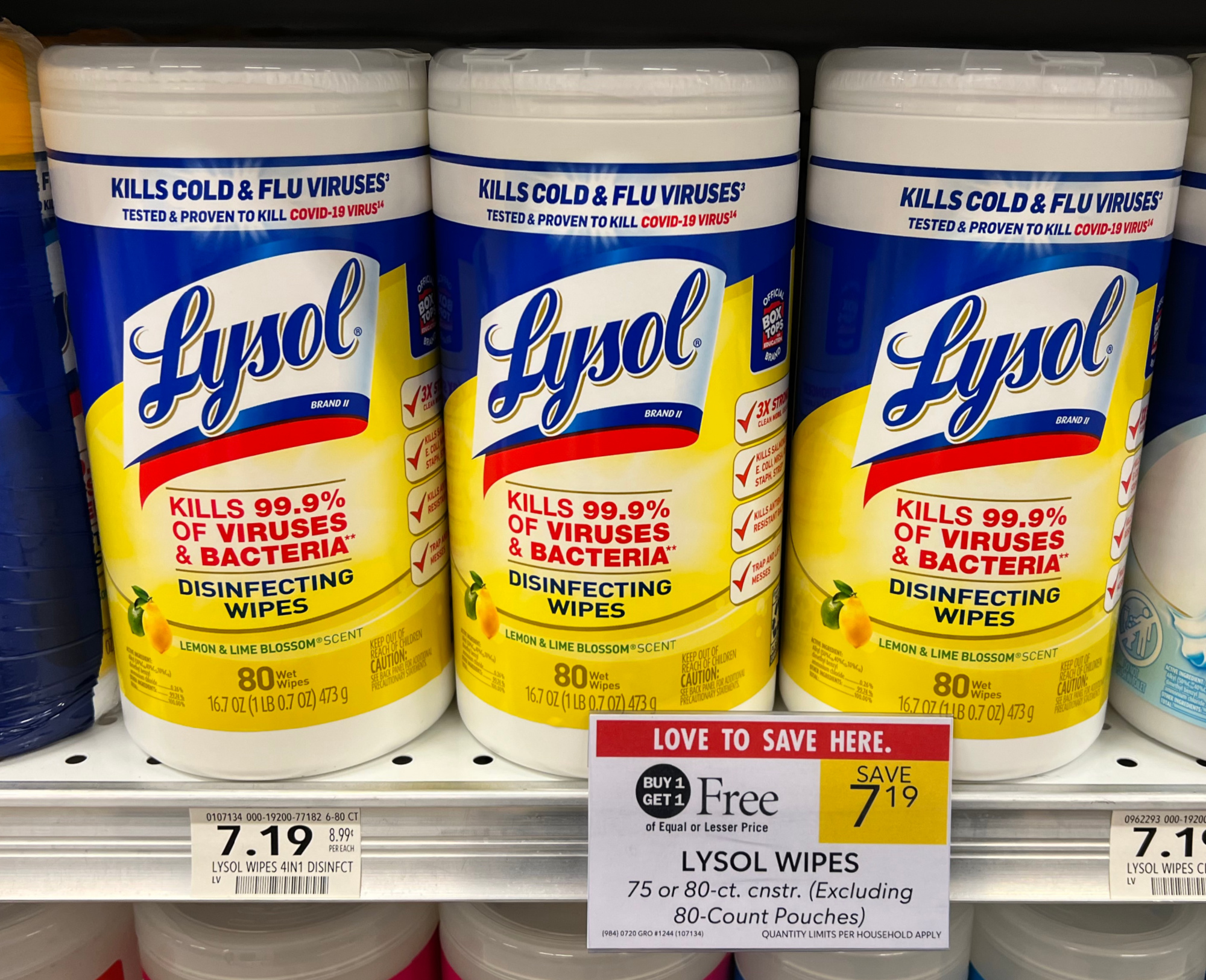 Lysol Wipes, 75 or 80 ct, (Excluding 80-Count Pouches), BOGO $7.19
