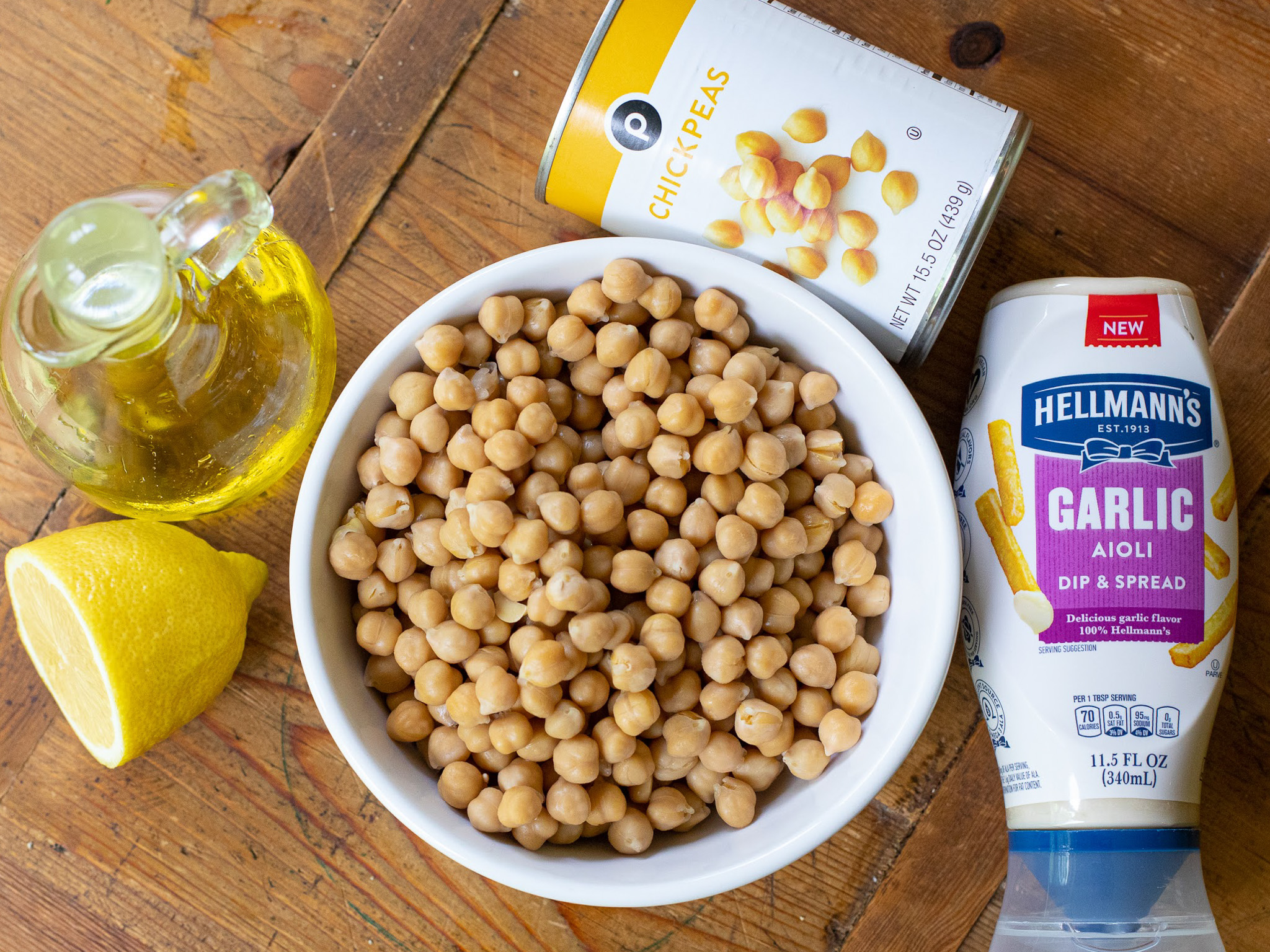 I have some great news! Right now is the perfect time to add the hummus to your menu. With the offer in the upcoming Extra Savings Flyer, you’ll save $1.50 off a bottle of Hellmann’s Garlic Aioli. Grab a bottle at a great price, pick up a lemon and a couple of cans of chickpeas and you’re in business.