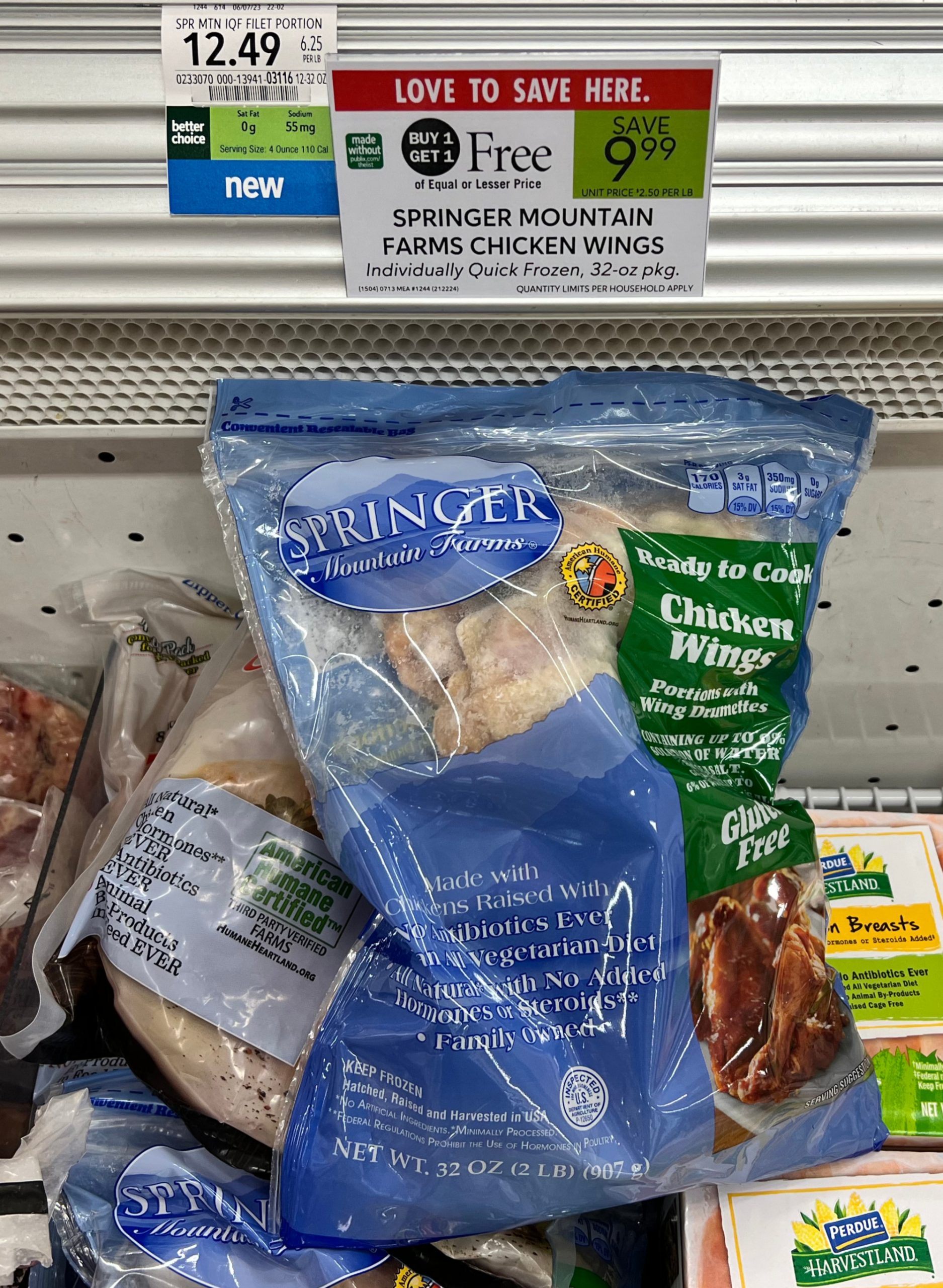 Right now you can pick up the bags of Springer Mountain Farms Frozen Chicken Wings at a super discount. Check your last email, print your coupon and get the chicken as low as $3.50 the next time you shop.
