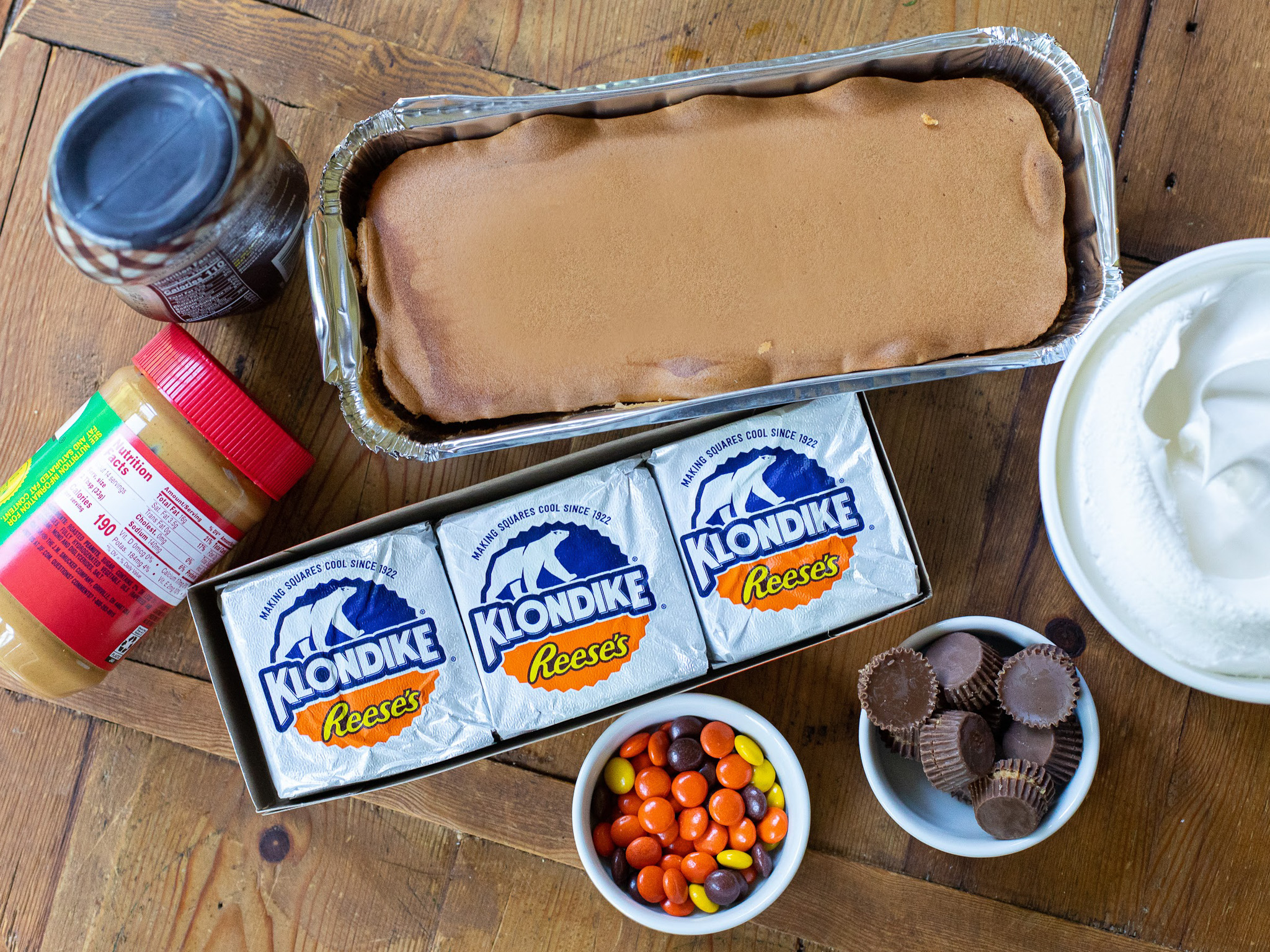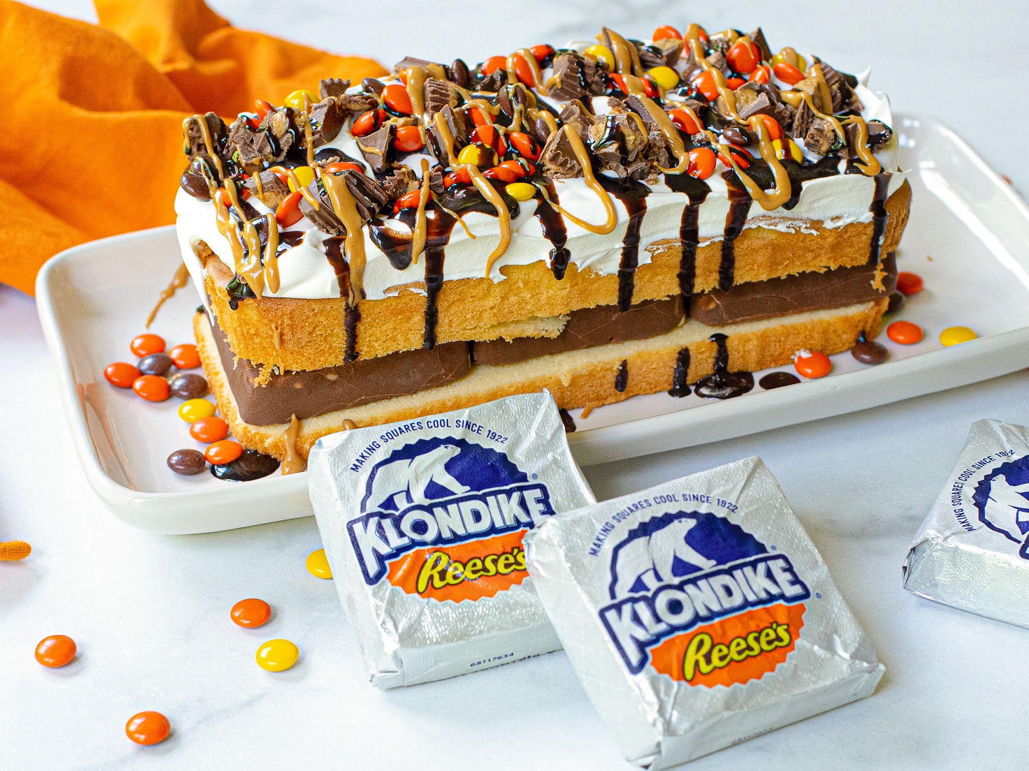 - Unwrap and sandwich the Klondike Reese's Bars between the two cake layers.
