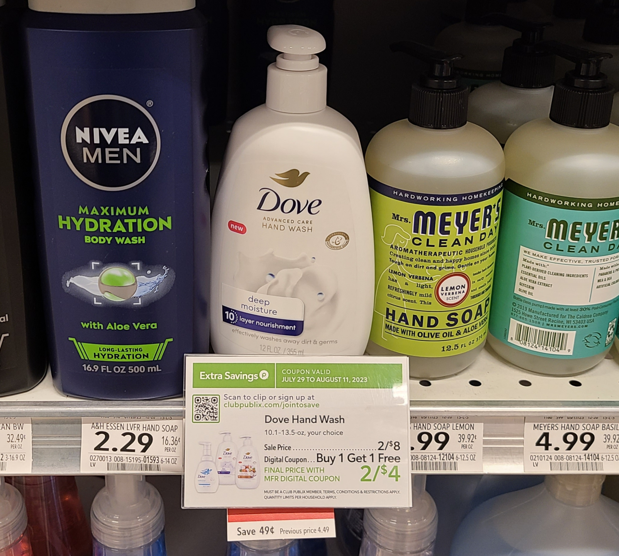 Have you tried new Dove Hand Wash yet? Now is the time as we have a new digital coupon that pairs up to our Publix sale. After discounts, you can get the bottles for only $2 each!