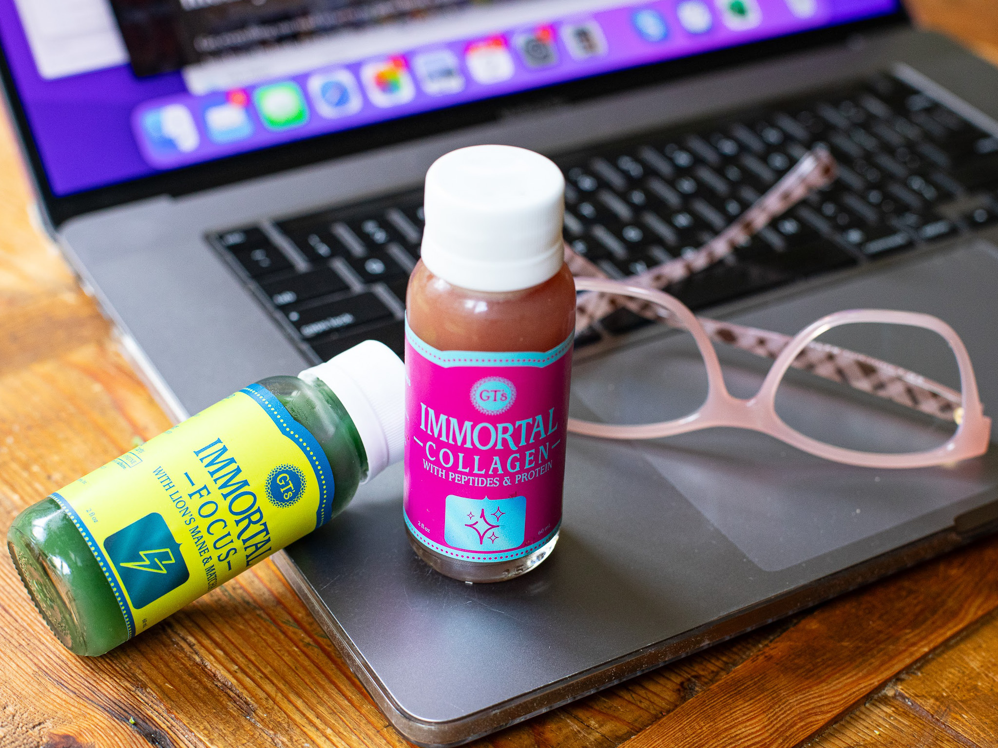 Every bottle of IMMORTAL is crafted specially to spotlight and amplify each ingredient’s intentionality for proactive immunity and ritual wellness. Raw and fermented for highest efficacy in unique, specialized formulas for Focus, Immunity, Digestion, and Collagen. IMMORTAL SHOTS are bottled in glass to help preserve our planet, provide nutrient integrity and bioavailability, and to better boost your body’s natural functionality and adaptability.