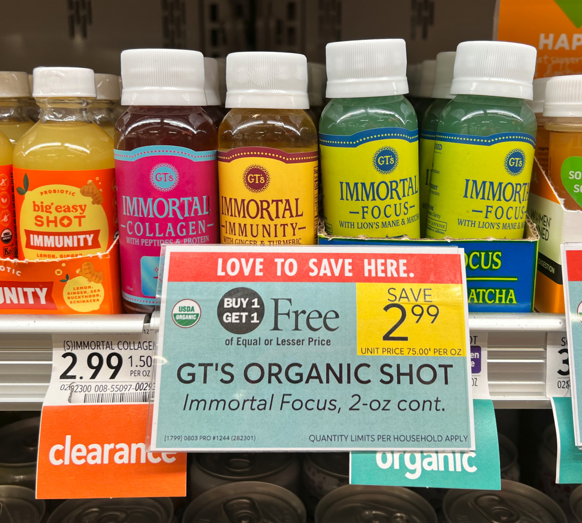 Grab the GT’s Organic Shots for a nice price at Publix. Combine the BOGO sale and cash back offer to pay just a buck each the next time you shop!