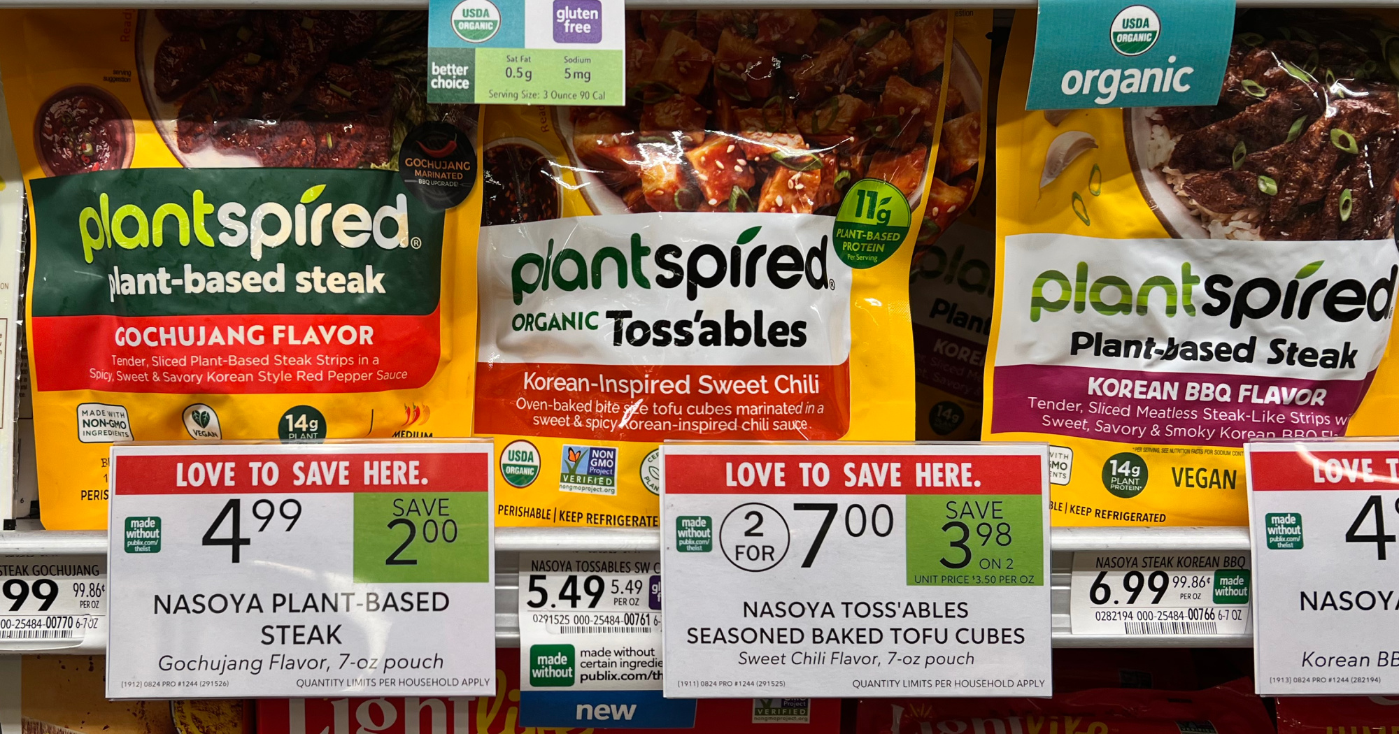 Pick up nice deal on Nasoya Toss’ables Seasoned Baked Tofu Cubes at Publix. Combine the sale and coupon to pay just $2.75 the next time you shop. If you haven’t tried the Toss’ables yet… you gotta check them out–they are really tasty!