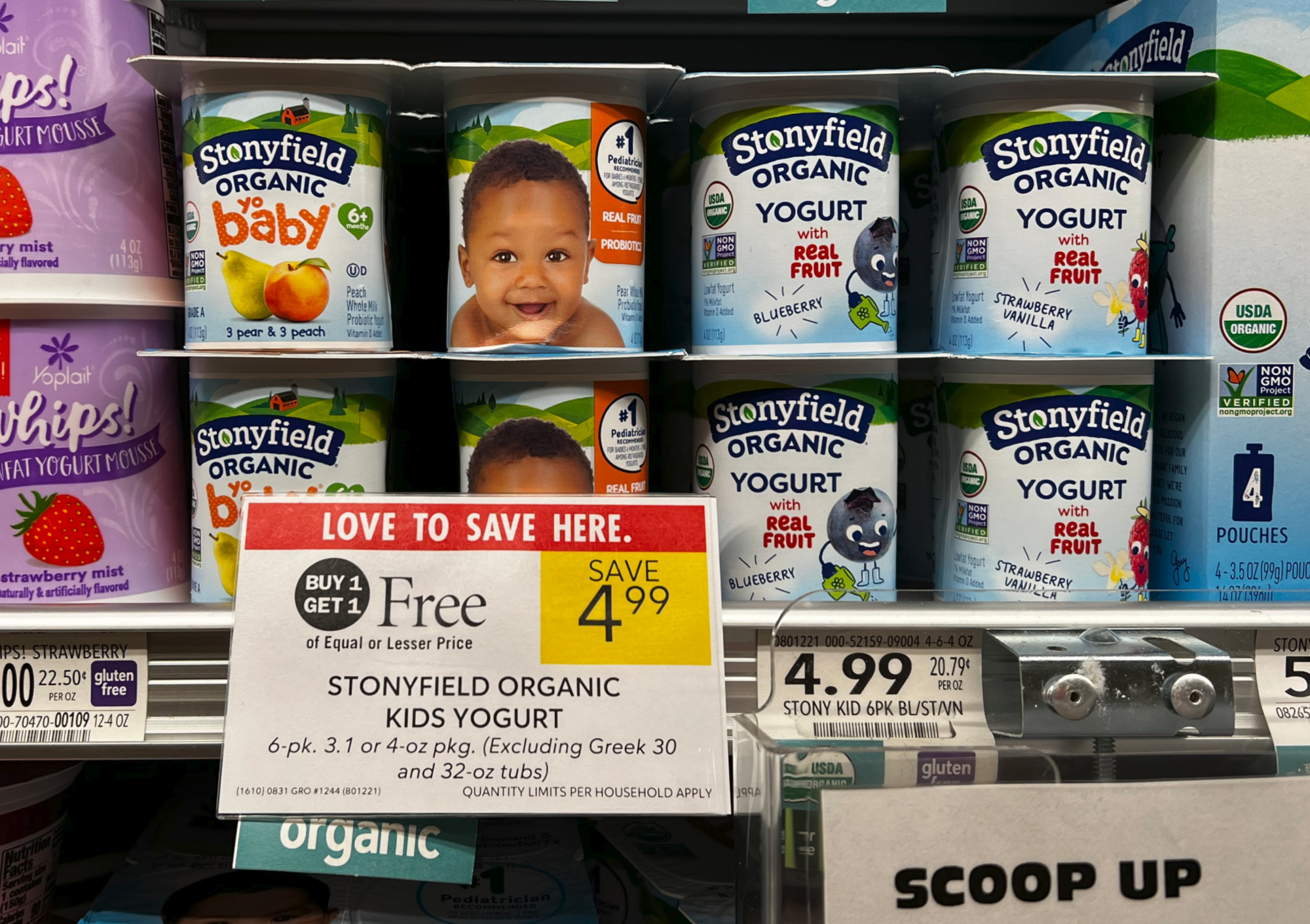 –$2/2 Stonyfield Organic Yogurt Kids or YoBaby Multipack, any variety (6 pack or larger) (Publix Digital Coupon)