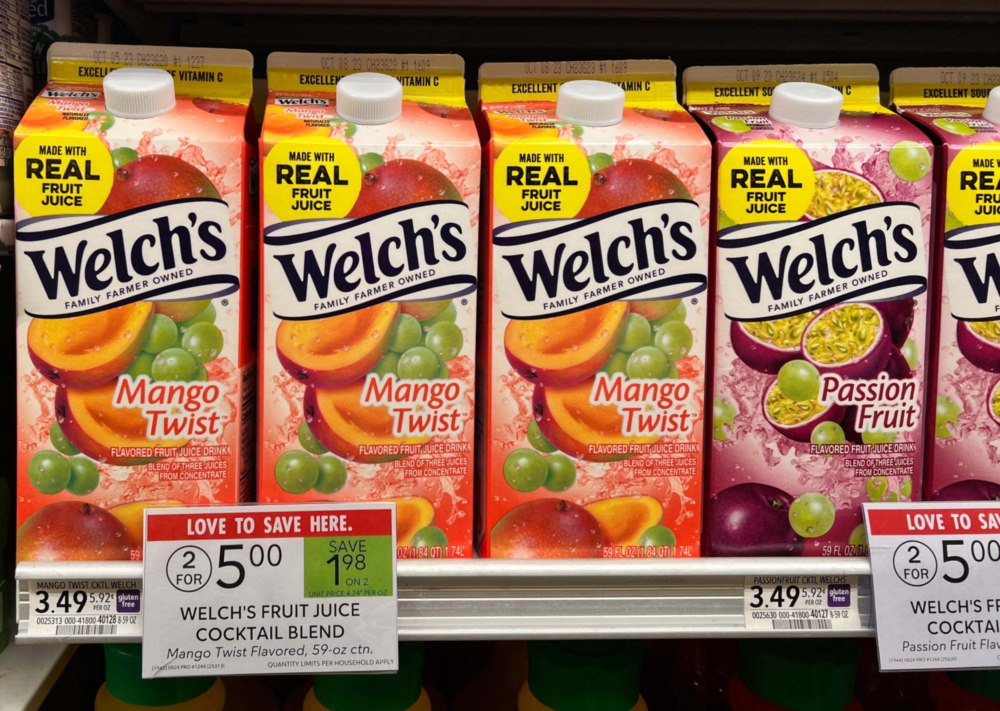 Welch’s Fruit Juice Cocktail Blend, 59 oz, 2/$5 (reg $3.49)