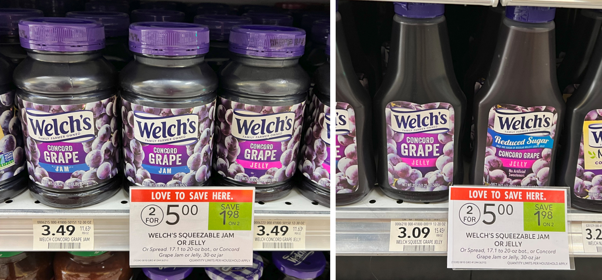 Welch’s Squeezable Jam or Jelly, or Spread, 17.1 to 20 oz bot, or Concord Grape Jam or Jelly, 30 oz, 2/$5