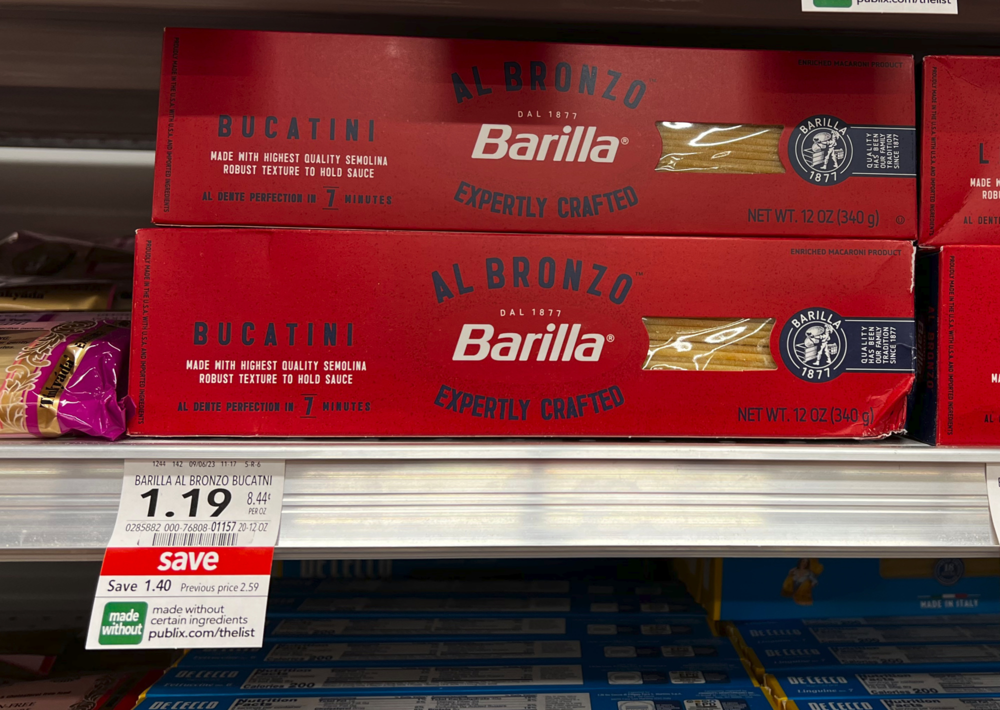 Barilla Al Bronzo Pasta, 12 oz, $1.19 (reg $2.59)