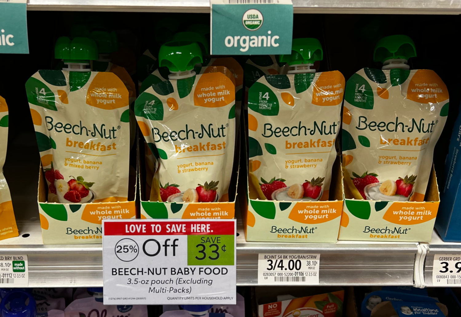 Look for a super discount on Beech-Nut Pouches at Publix. After discounts you can get your kiddo’s faves for just 67¢ each.
