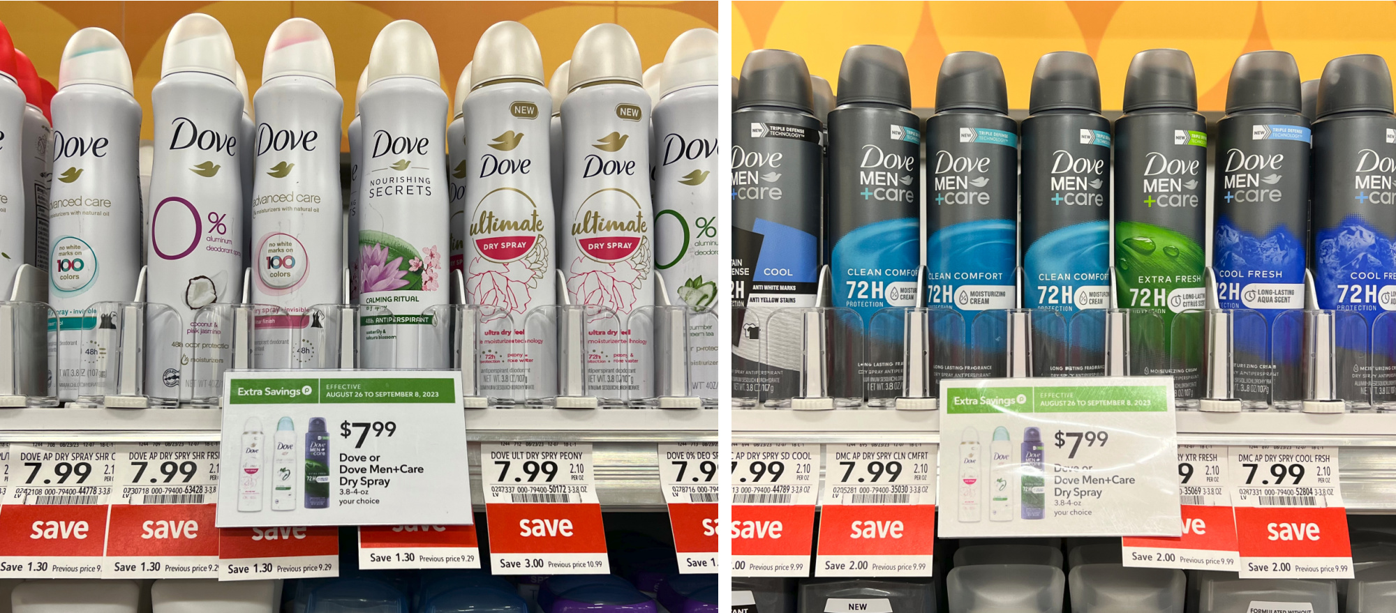 Dove, or Dove Men+Care Dry Spray, 3.8 to 4 oz, $7.99 (reg $9.29 – $10.99)