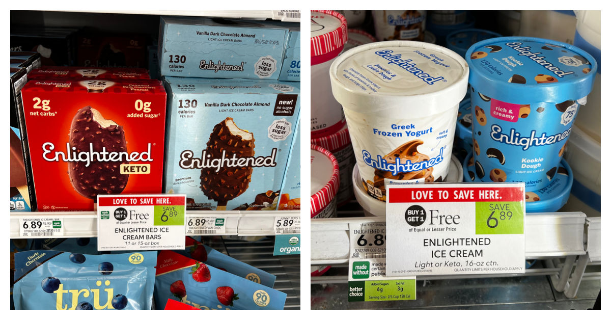 Grab a nice deal on Enlightened Ice Cream at Publix. Use the high value rebate and BOGO sale to pay as little as $1.45 the next time you shop!