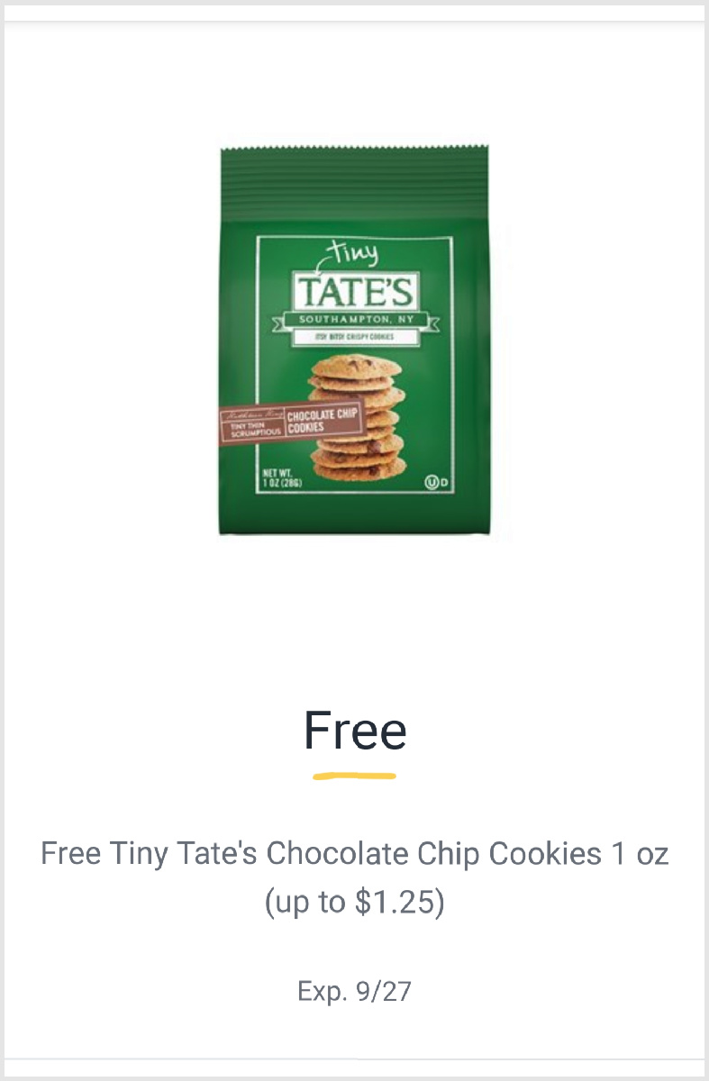 FREE Tiny Tate’s Chocolate Chip Cookies, 1 oz (up to $1.25) (Publix Digital Coupon)