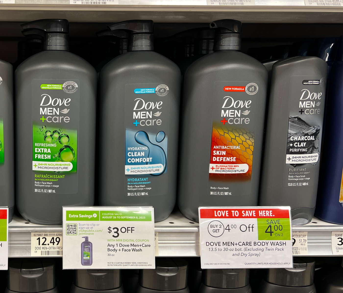 –$3/1 Dove Men+Care Body Wash with Pump 30 oz (excludes all other sizes) (Publix Digital Coupon)