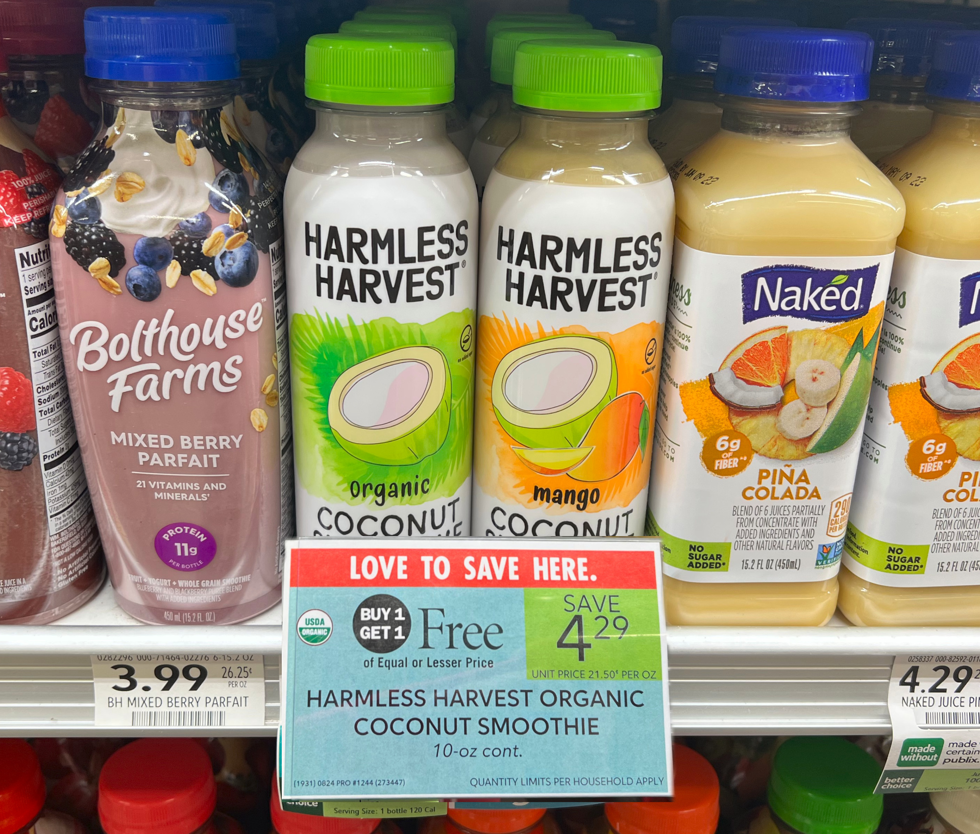 Harmless Harvest Organic Coconut Smoothie, 10 oz, BOGO $4.29