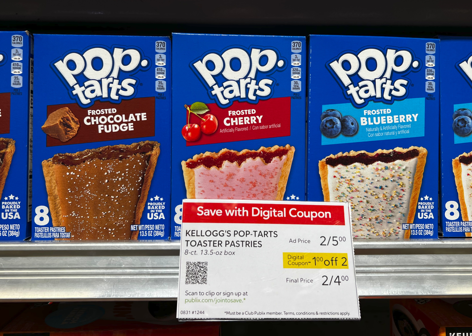 –$1/2 Kellogg’s Pop-Tarts Toaster Pastries, 8 ct, 13.5 oz, (Publix Digital Coupon)