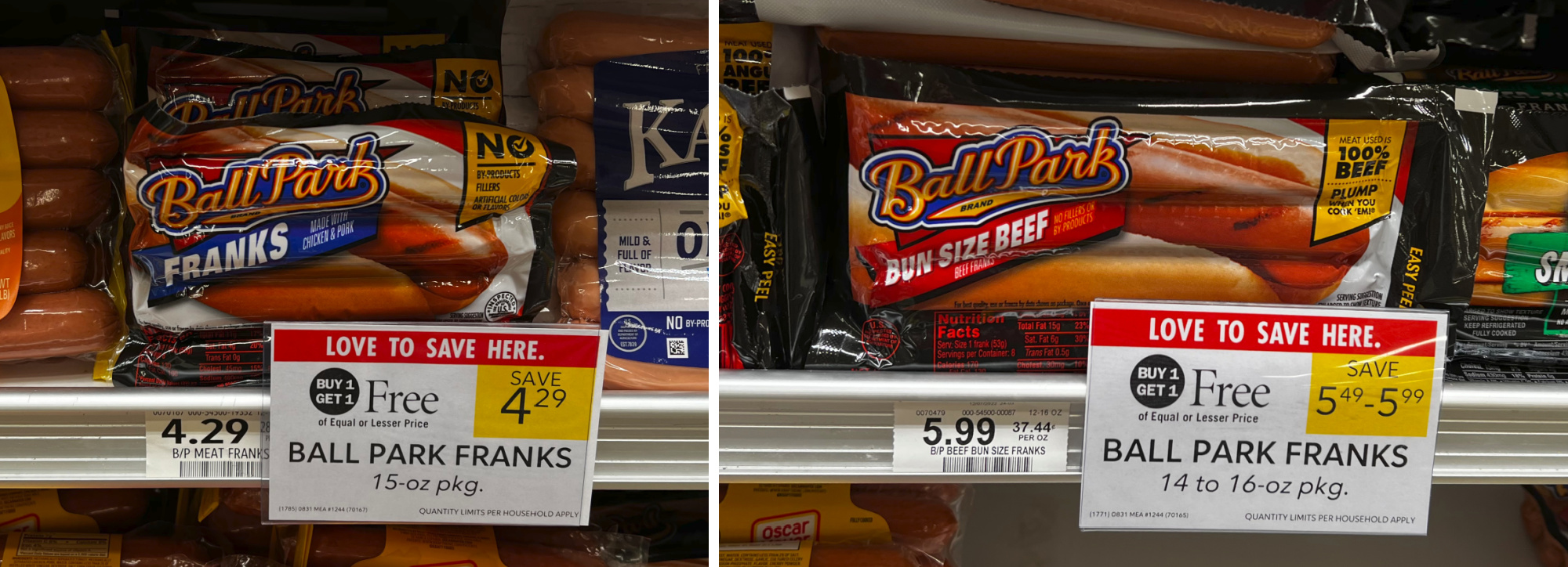 Ball Park Franks, 10 to 16 oz, BOGO $4.29 – $6.49