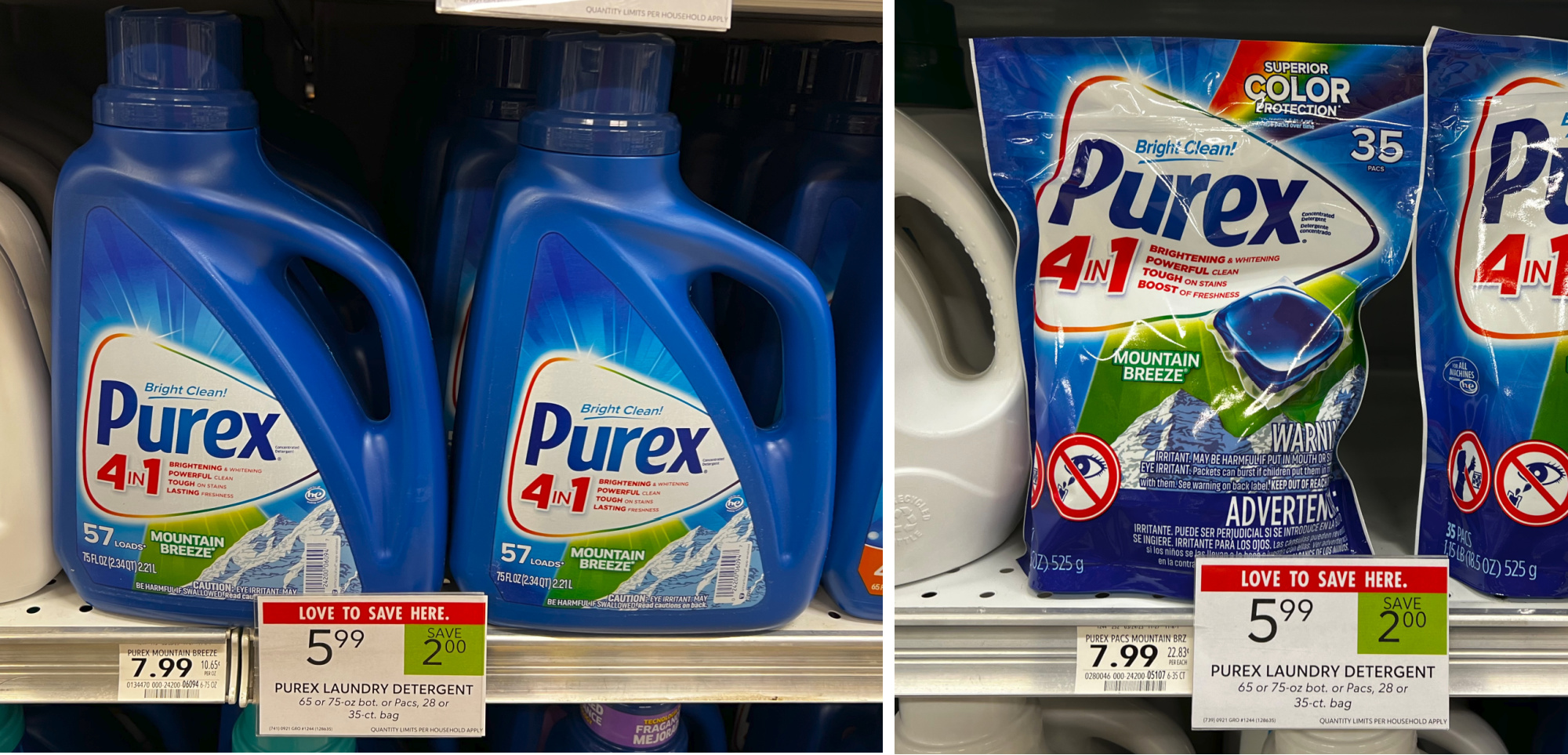 Purex Laundry Detergent, 65 or 75 oz, or 28 or 35 ct, $5.99