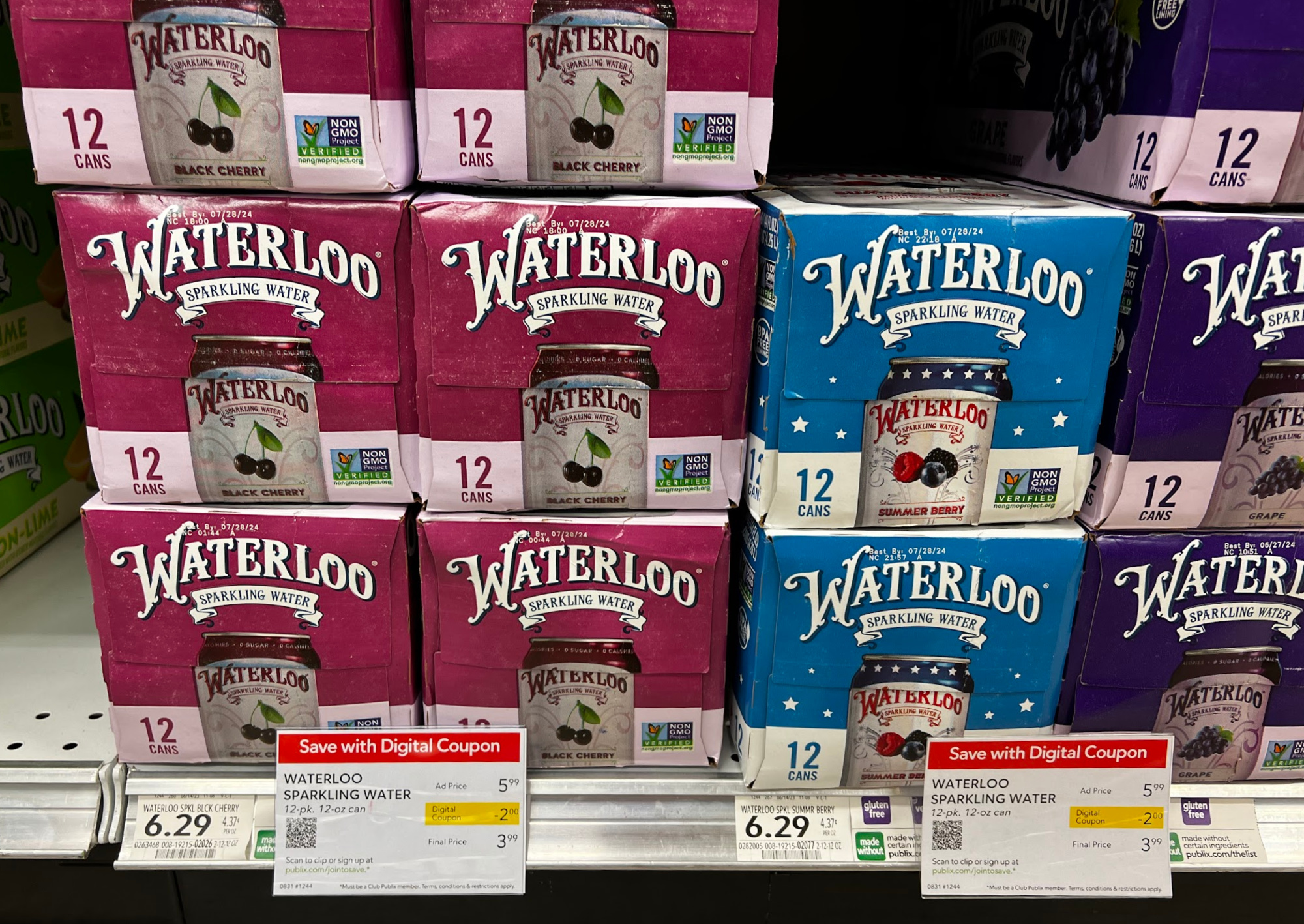–$2/1 Waterloo Sparkling Water, 12-pk, 12 oz, (Publix Digital Coupon)