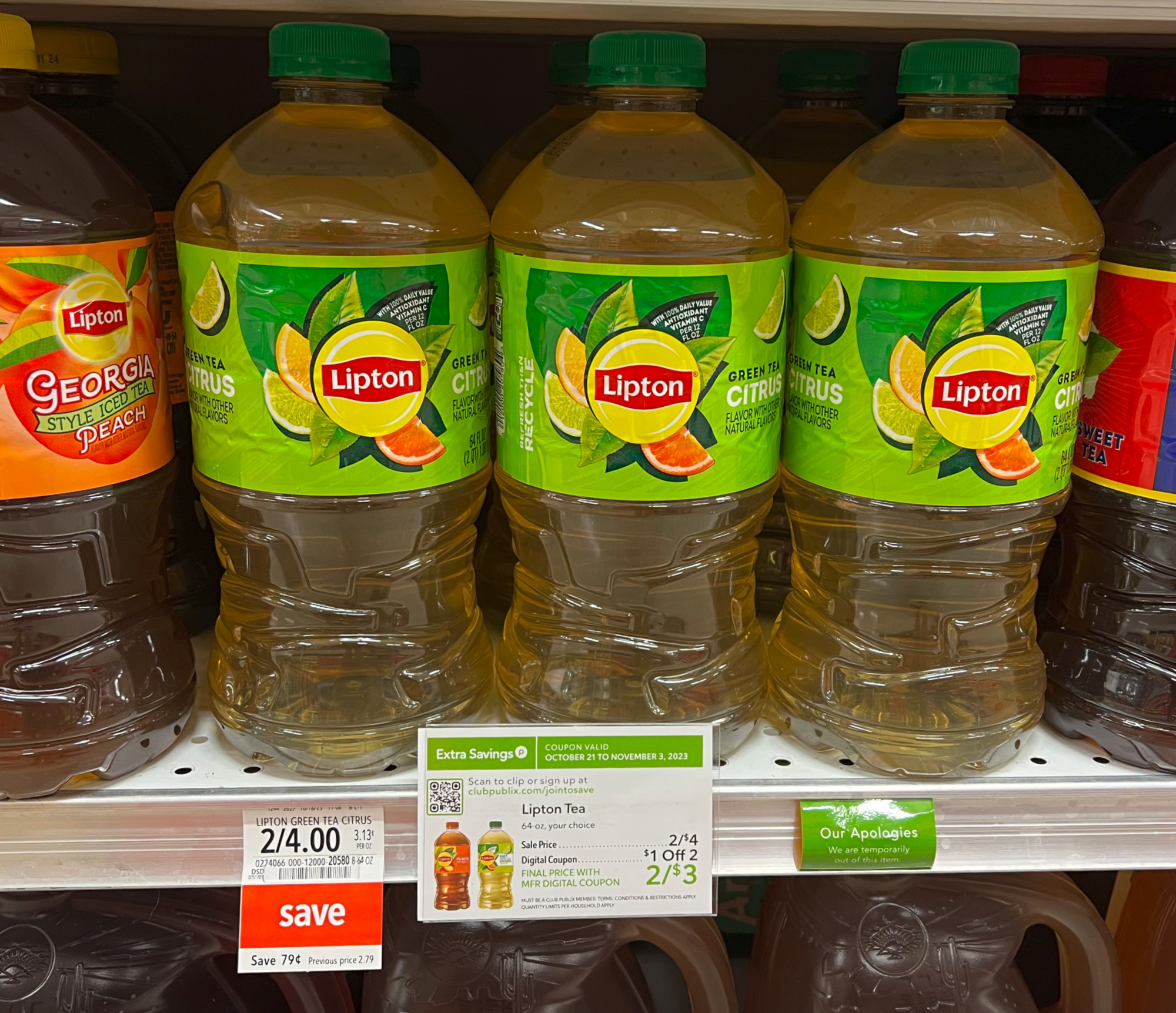 –$1/2 Lipton Tea, 64 oz (Publix Digital Coupon)