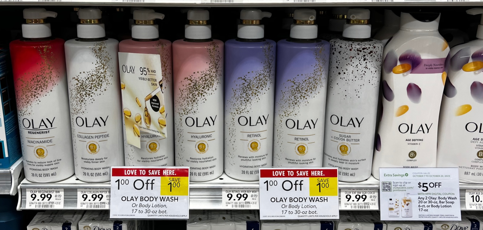 –$5/2 Olay Body Wash 20 oz or 30 oz, Olay Bar Soap 6 ct AND/OR Olay Body Lotion 17 oz (Publix Digital Coupon)