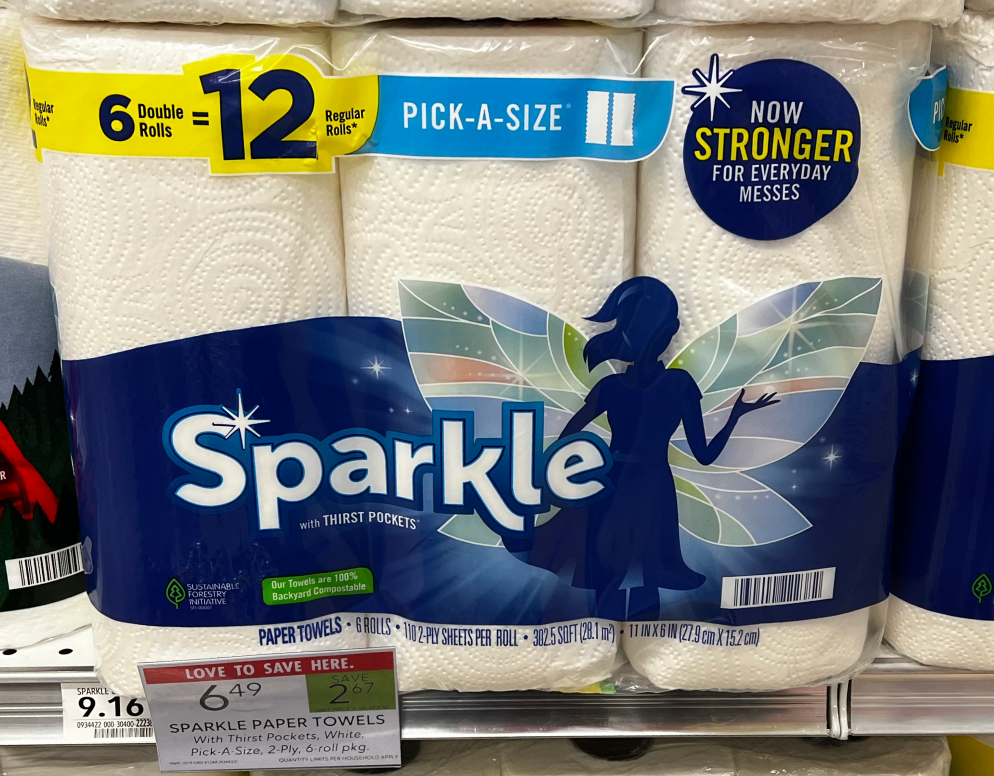 Sparkle Paper Towels, with Thirst Pockets, 6-roll, $6.49 (reg $9.16)