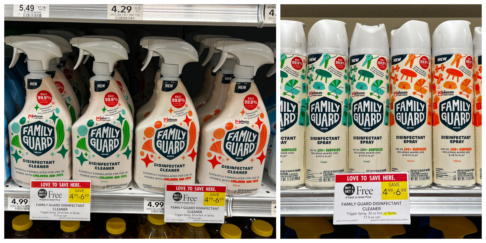 FamilyGuard™ Brand Disinfectant Spray, 17.5 oz and Disinfectant Cleaners, 32 oz, BOGO $4.99 – $6.99
