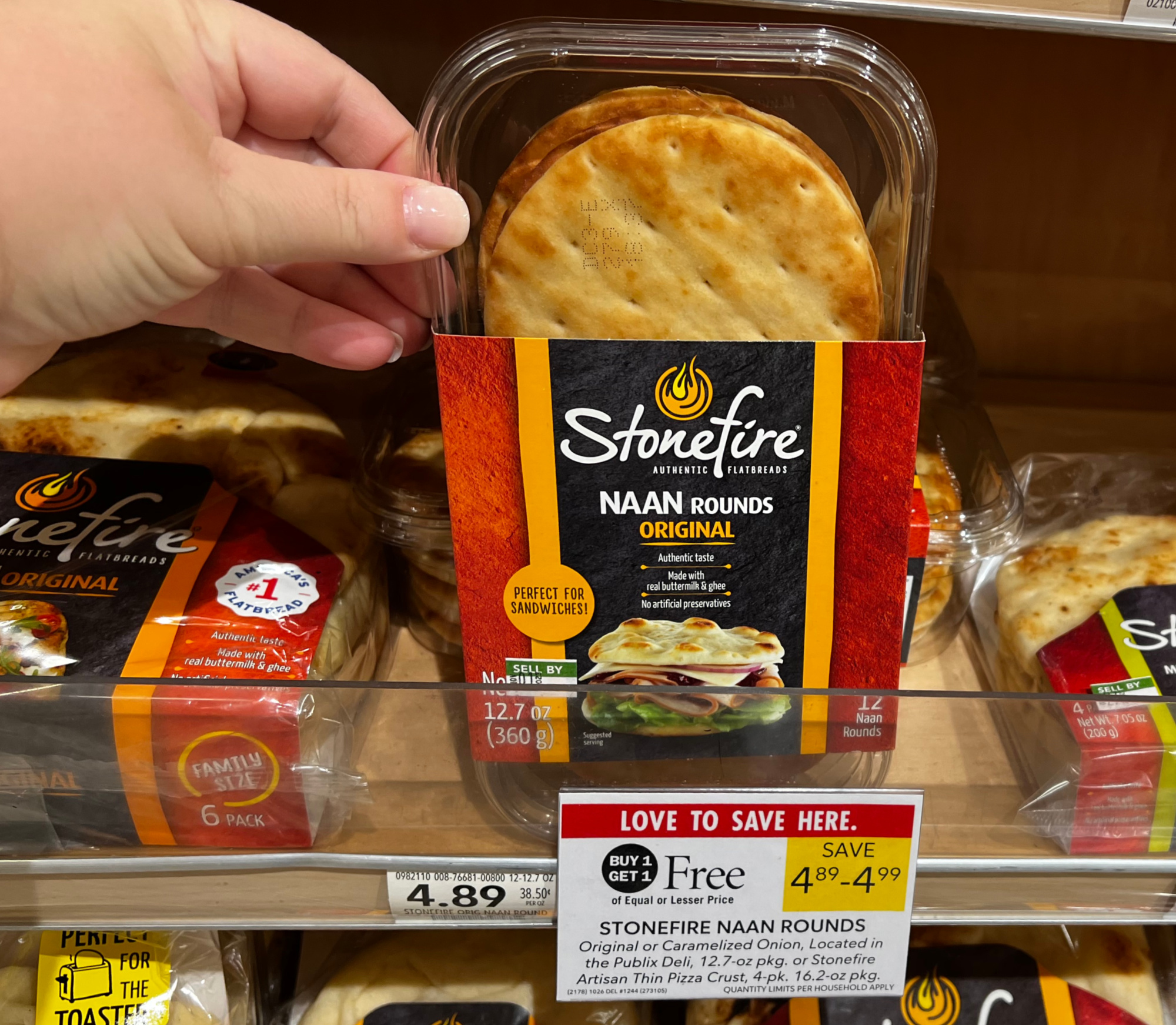 Grab your Stonefire coupons for the Publix sale. Use them to score Stonefire Naan Rounds for as low as $1.45 per package. That’s a great price!
