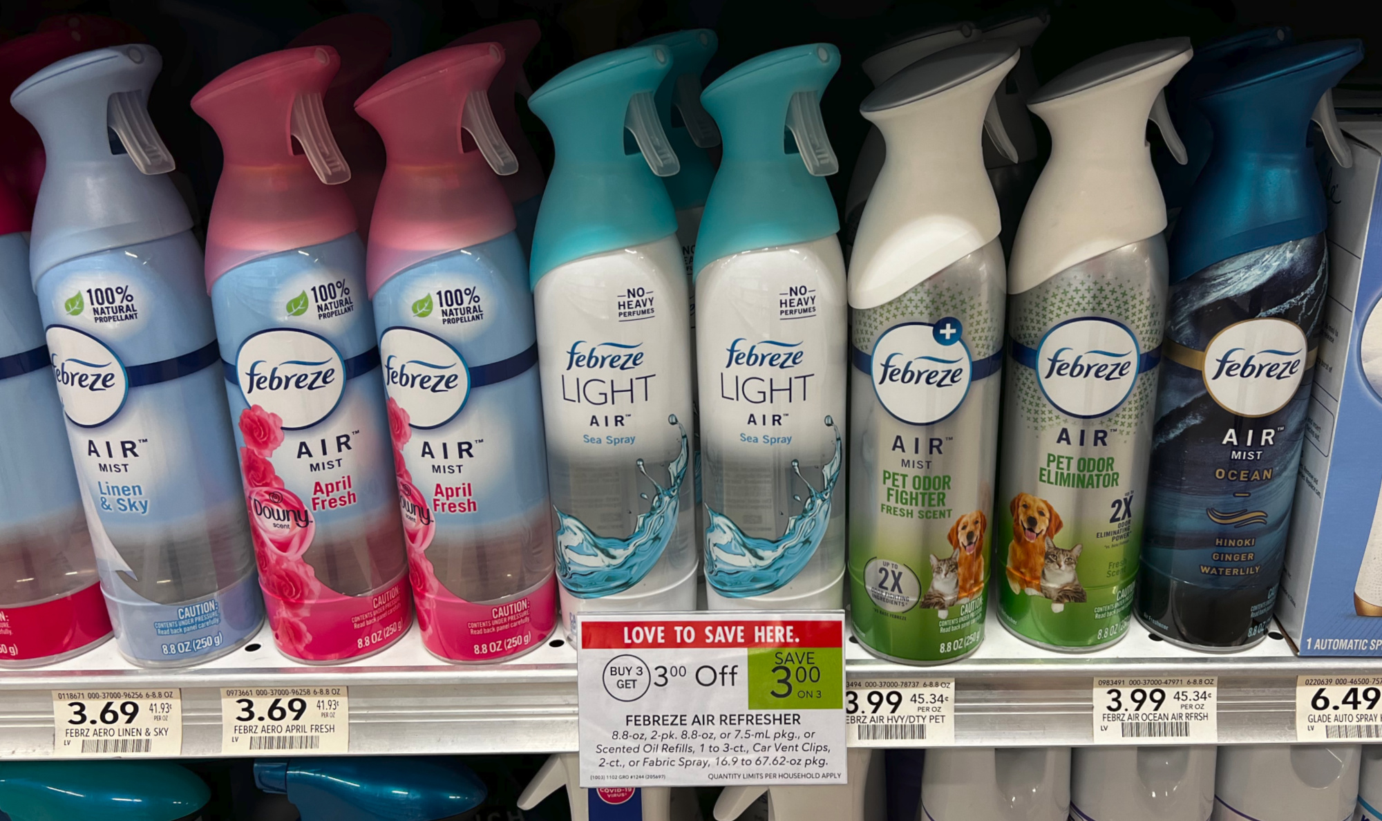 –$3.30/2 Febreze Products (excludes Unstopables, Heavy Duty, Ember, Wood, Ocean, Mountain, and Kitchen Odor Eliminator Scents, Plug Warmer, and trial/travel size) (Publix Digital Coupon)
