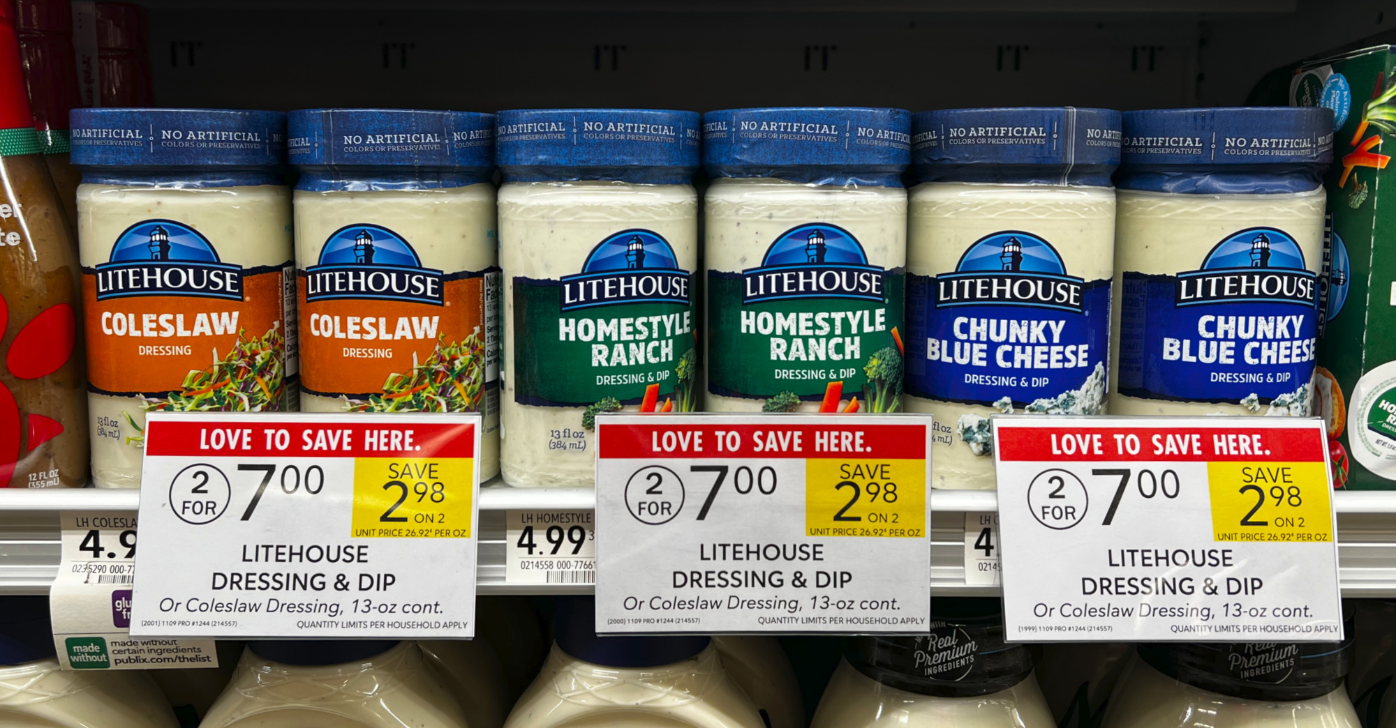 Load your Litehouse Ibotta offer and head to Publix for a deal on the bottles of Litehouse dressings. After discount, you can pick up your favorite for just $2.75 the next time you shop.