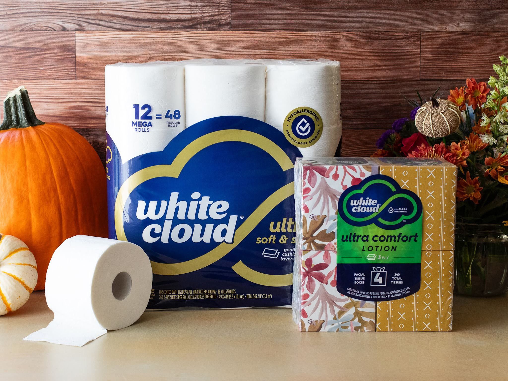 And don’t forget to get plenty of White Cloud® Ultra Soft & Strong Bath Tissue to have on hand for all your holiday entertaining. Those big 12-packs mean you’ll have plenty of bath tissue no matter the size crowd you are expecting. Each mega roll is equivalent to four regular rolls, so you won’t have to worry about running out any time soon!